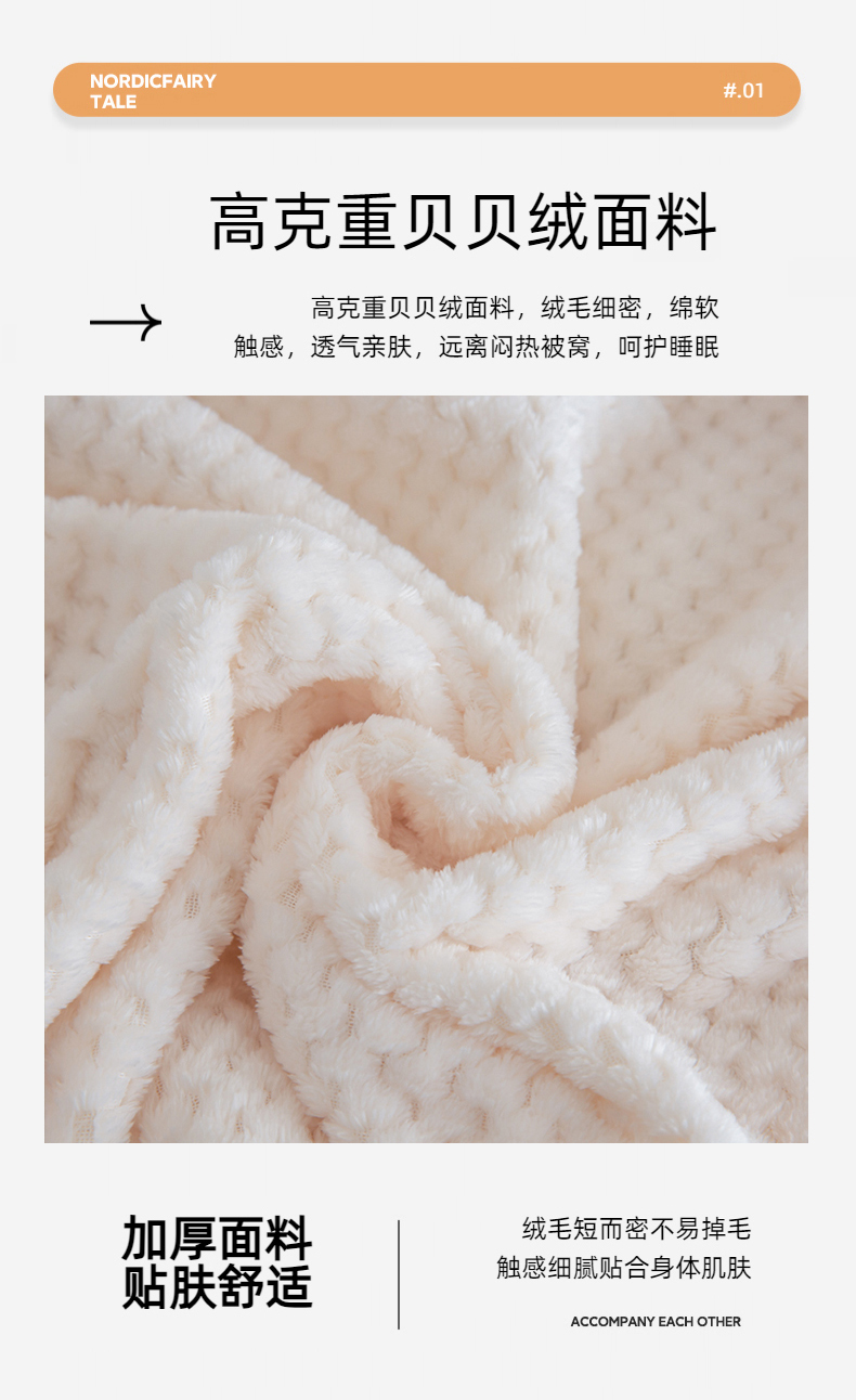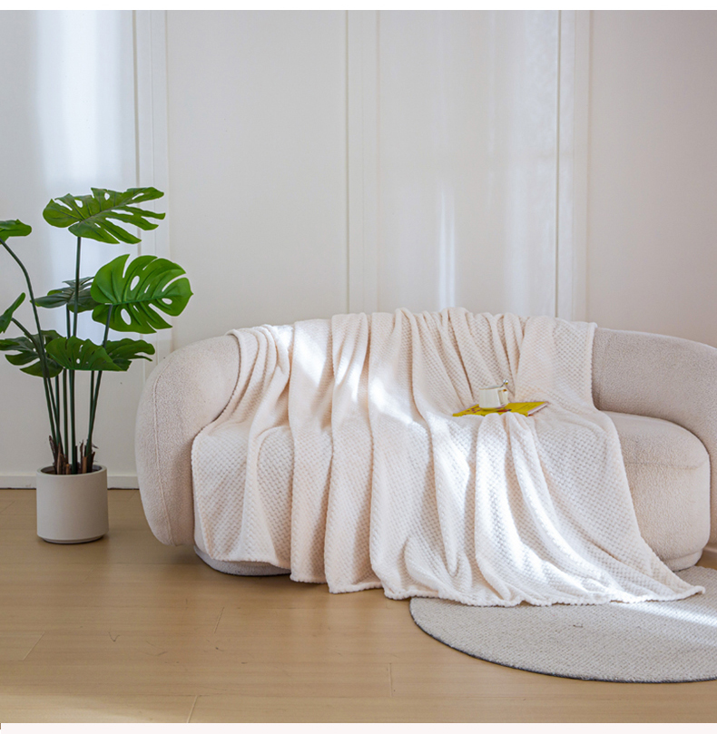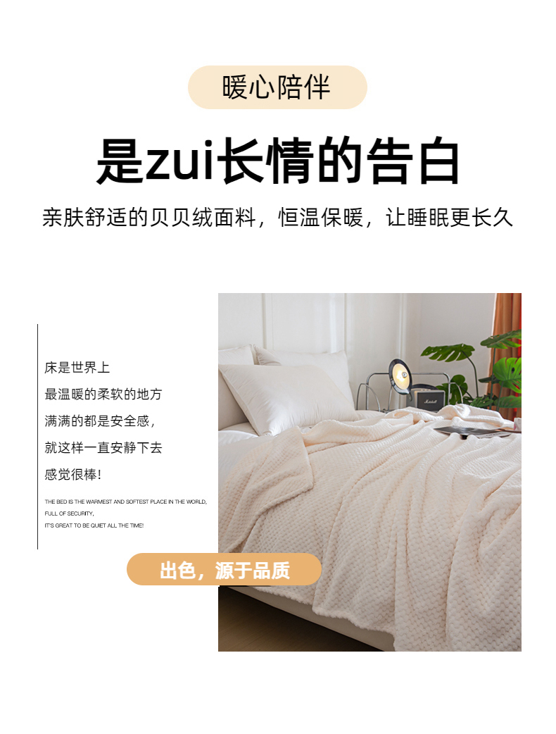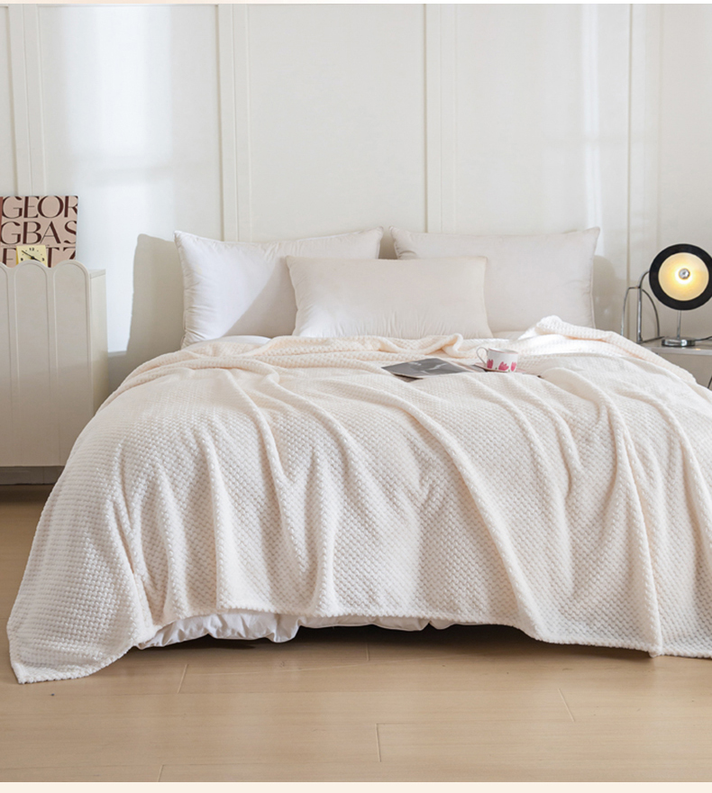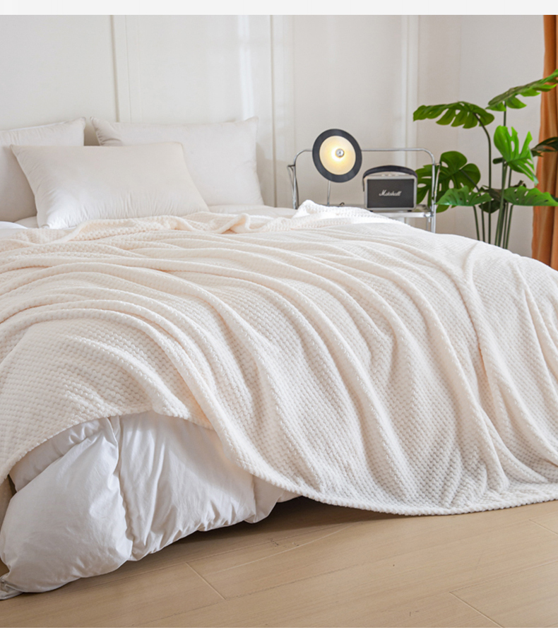 商品名称:卡琪曼 2024新款保暖菠萝格贝贝绒毛毯毯子 奶昔白