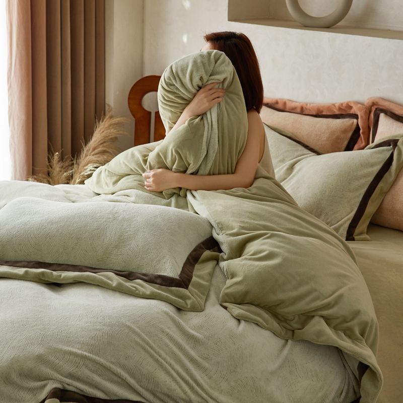 初拾 2024新款250g牛奶绒双色雕花—布拉格 布拉格-青绿