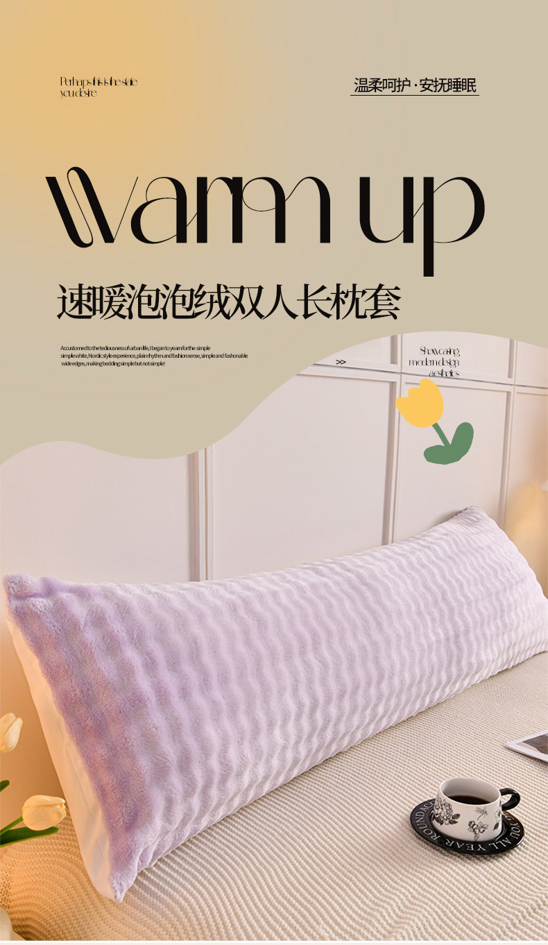 (总)艾兜坊 2024新款速暖兔毛泡泡绒双人长枕套,米白色,香芋紫,云朵灰,香槟色,抹茶绿,豆沙粉