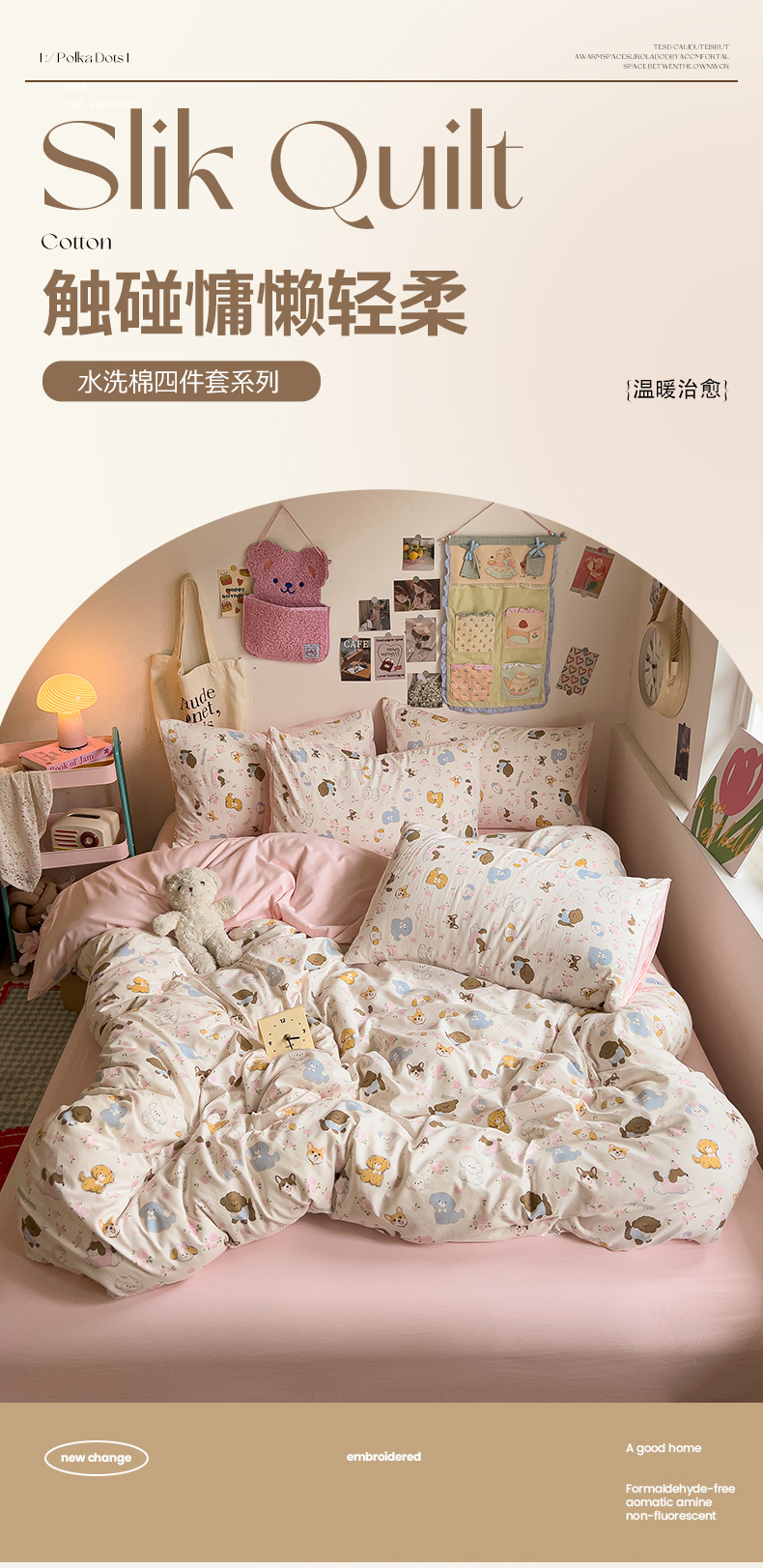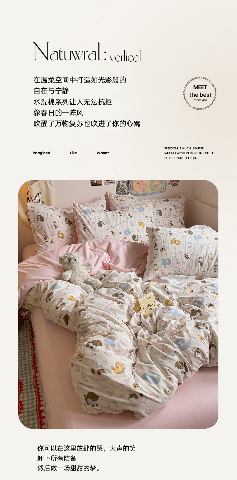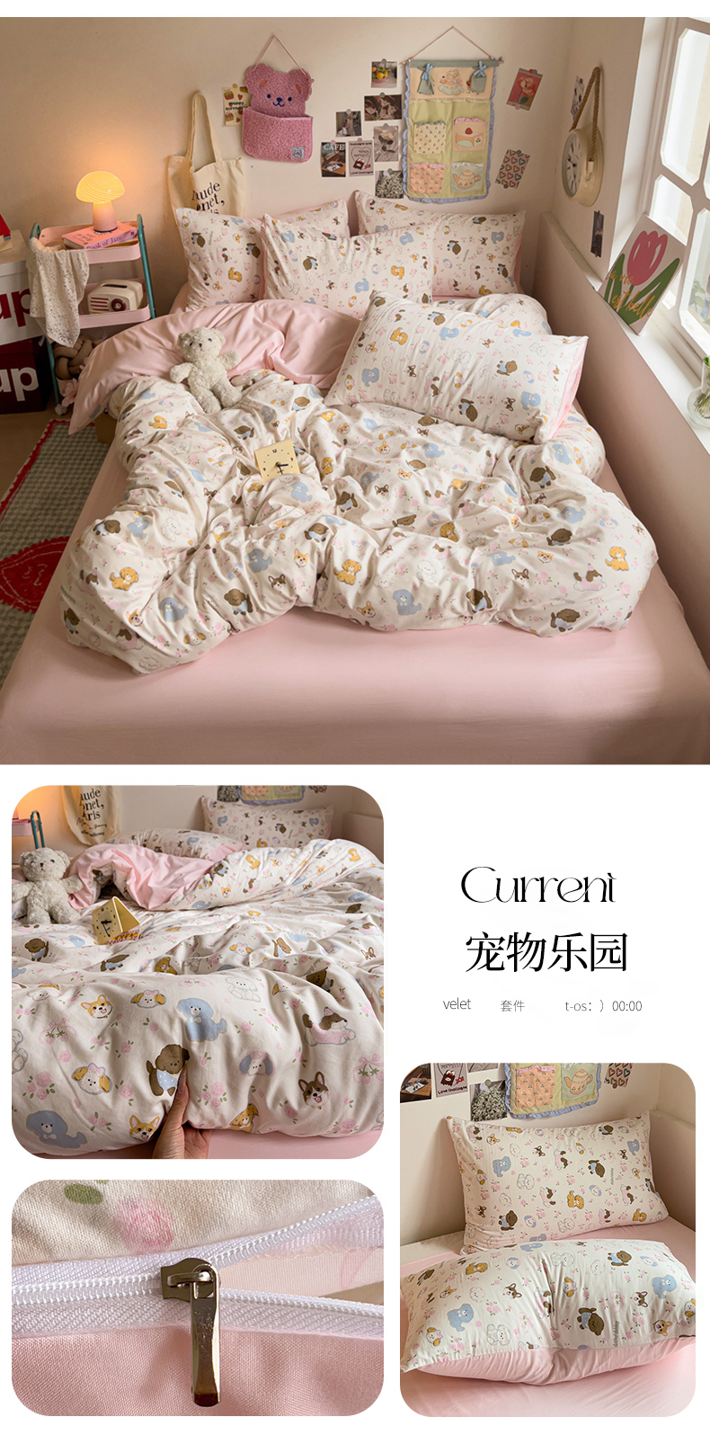 当前位置: 91家纺网 > 商品网购 > 床品套件 > 四件套 > 水洗棉四件套 > 梦卓家纺 2025新款亲肤超柔印花水洗棉四件套 宠物乐园