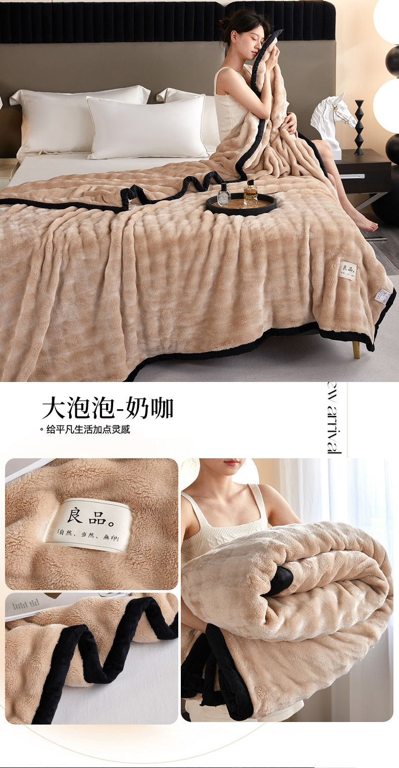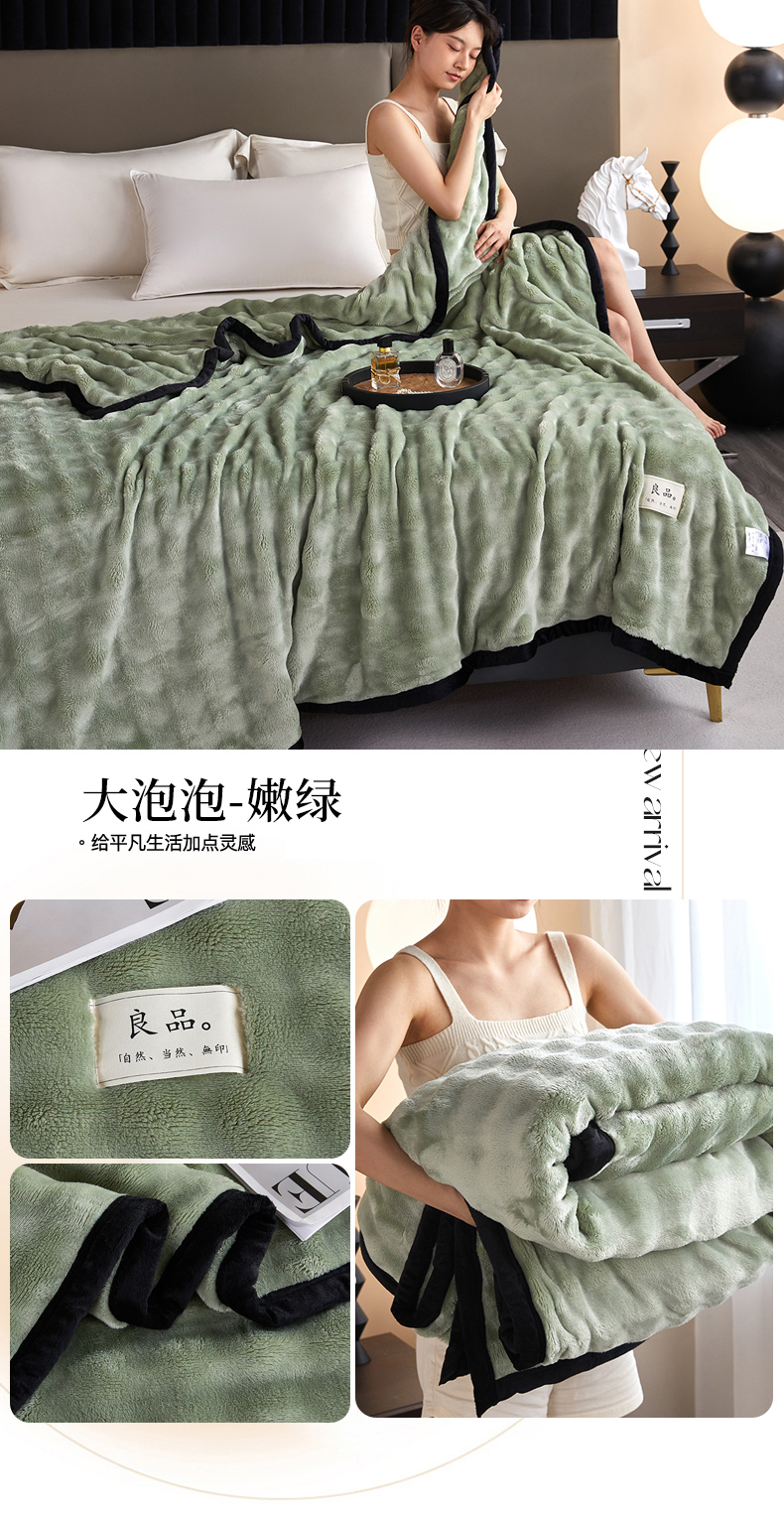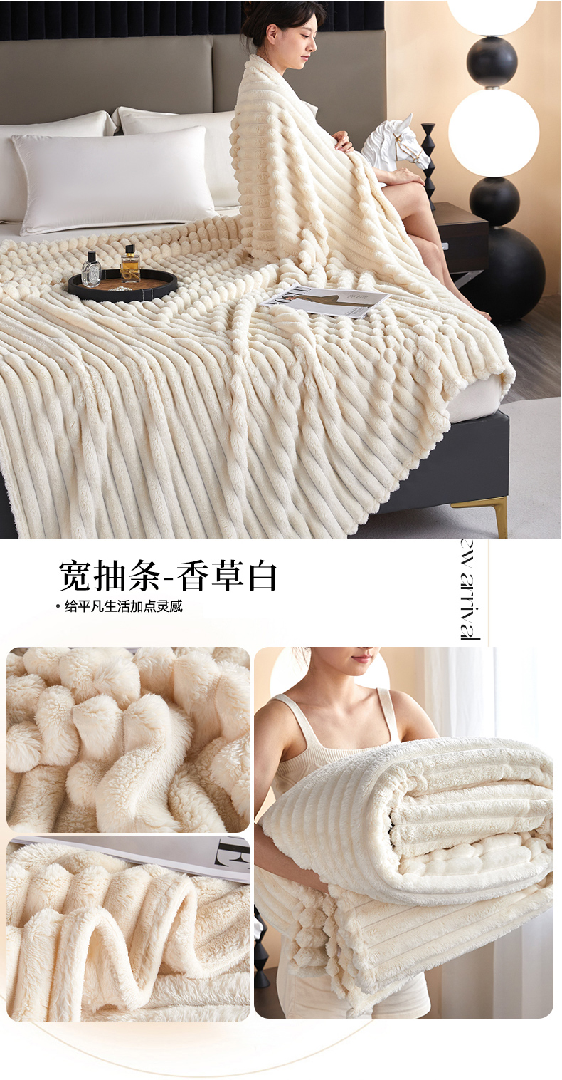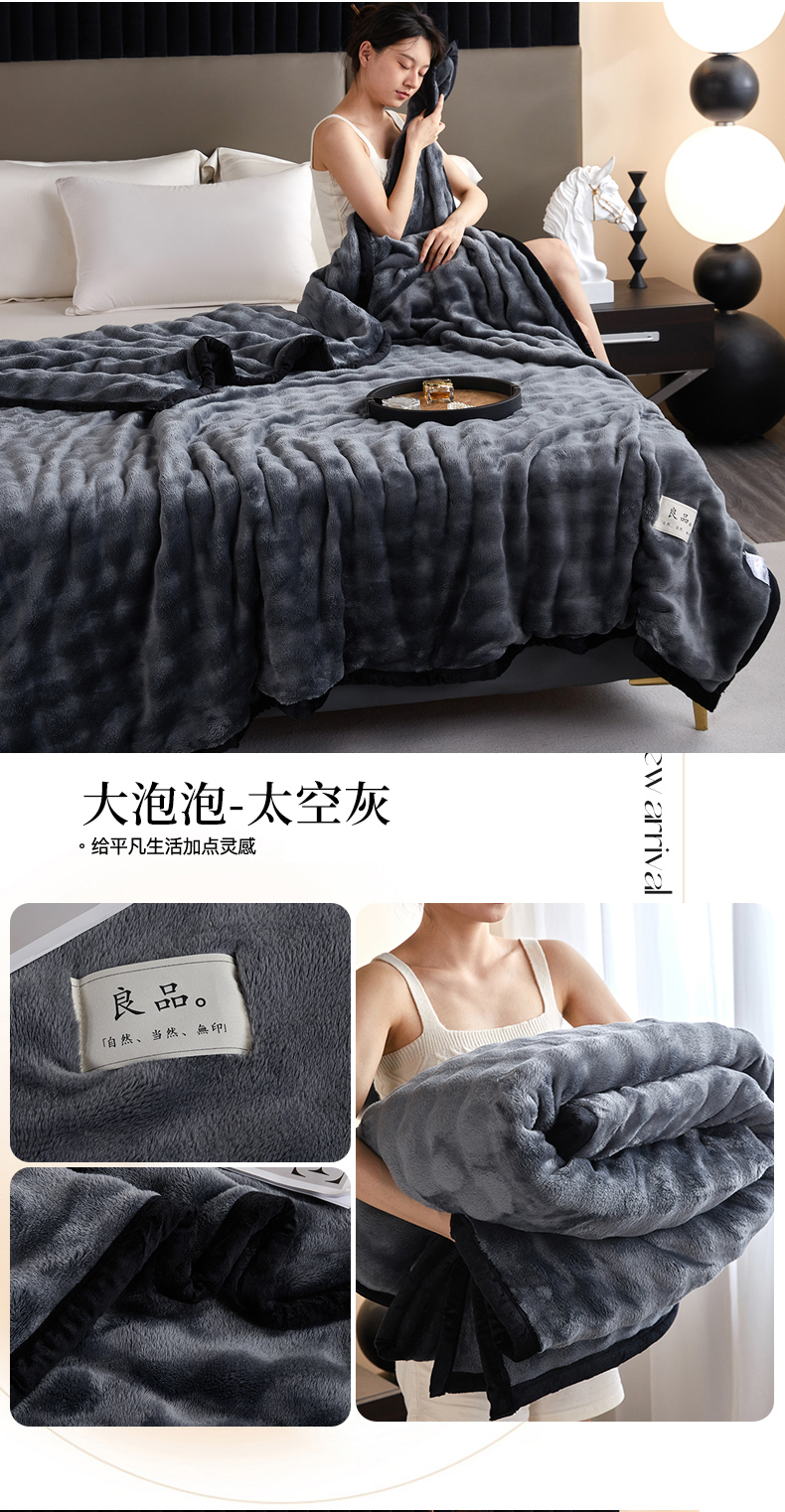 (总)美梦莱 2024新款大泡泡抽条双面兔毛绒毯子家用毯午睡盖毯