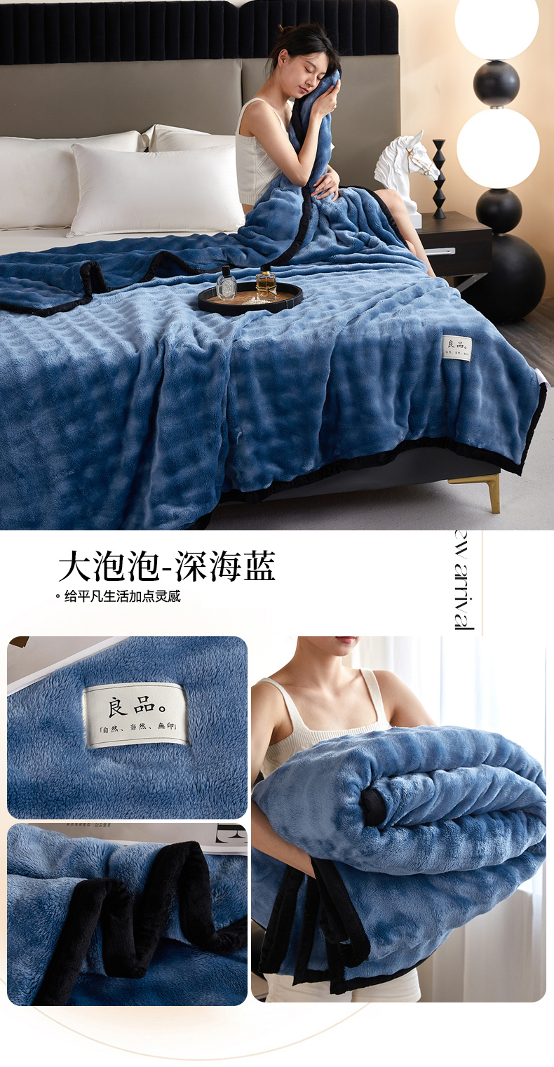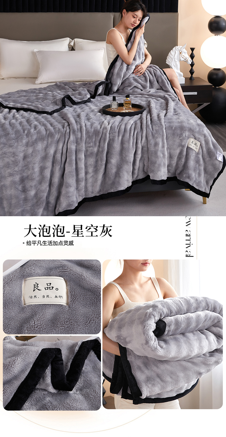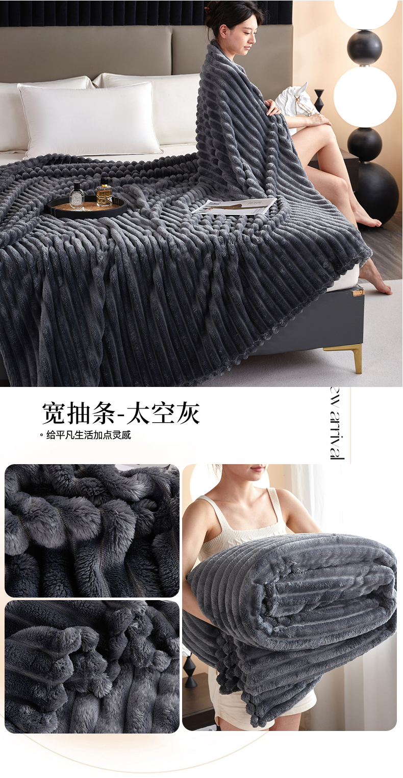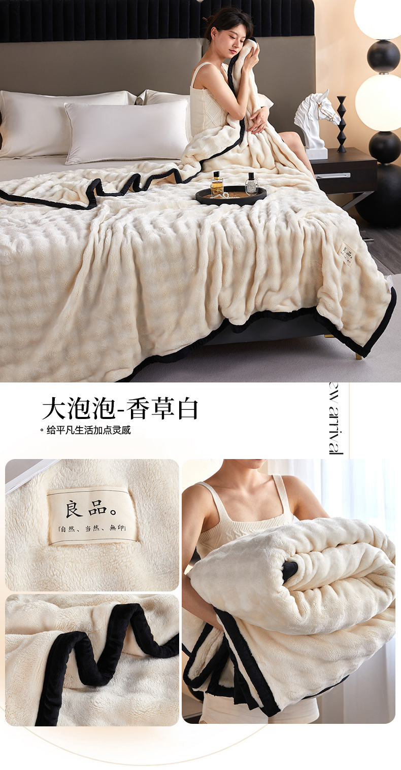 (总)美梦莱 2024新款大泡泡抽条双面兔毛绒毯子家用毯午睡盖毯
