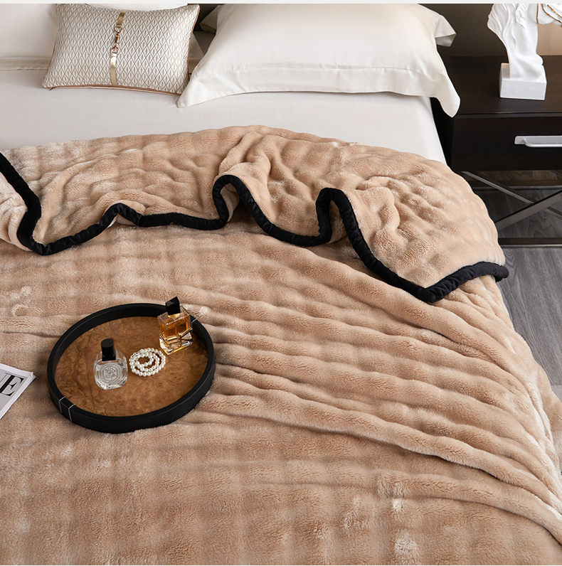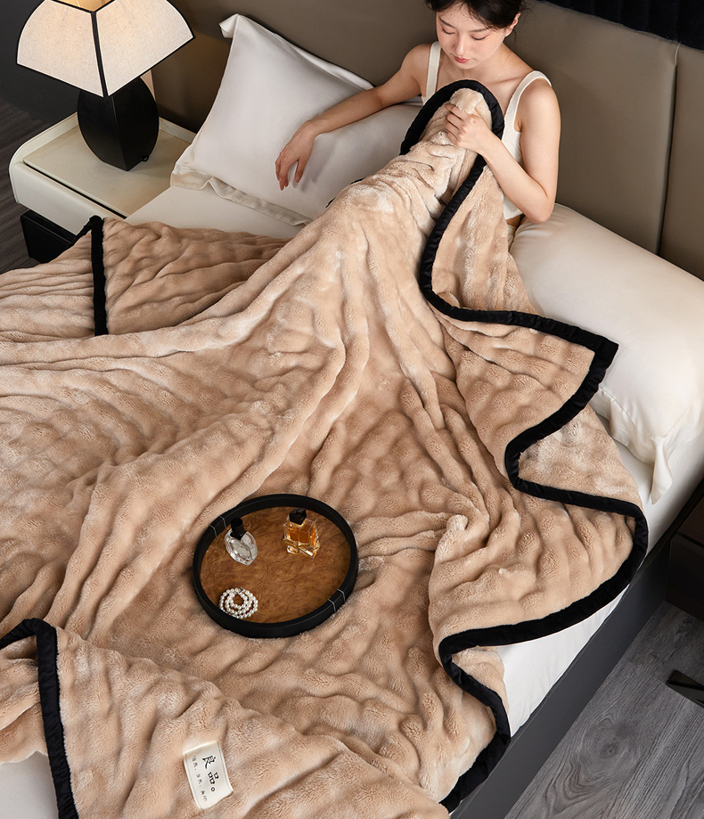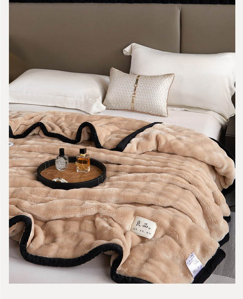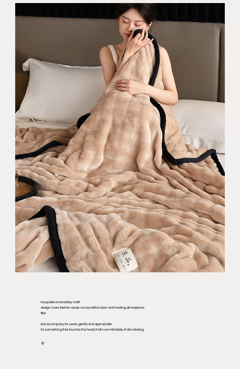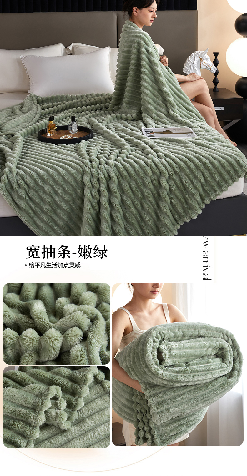 (总)美梦莱 2024新款大泡泡抽条双面兔毛绒毯子家用毯午睡盖毯