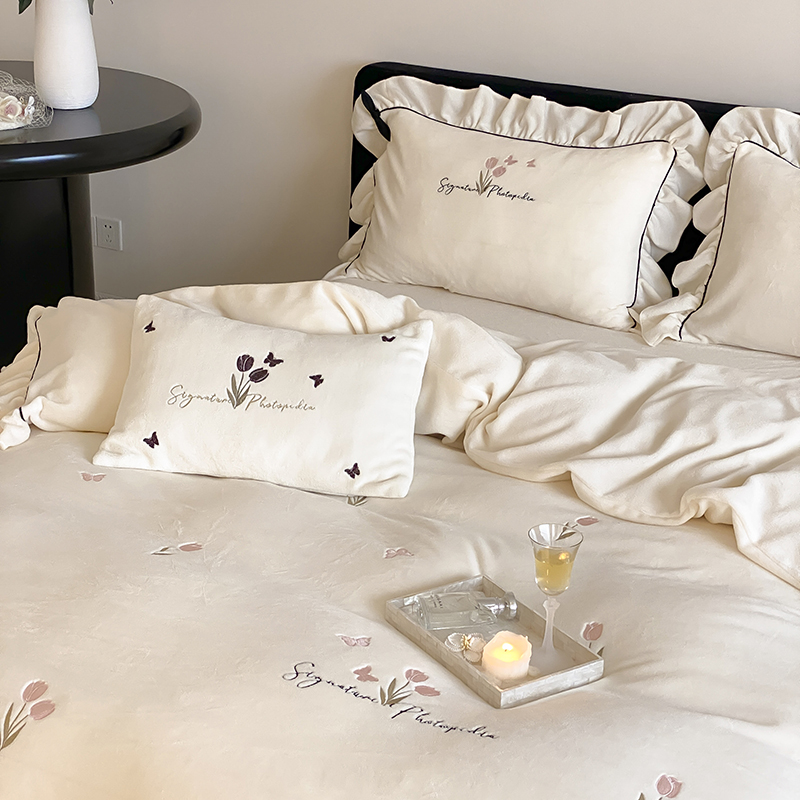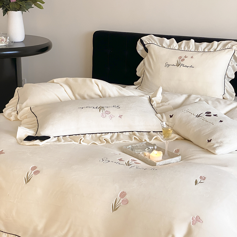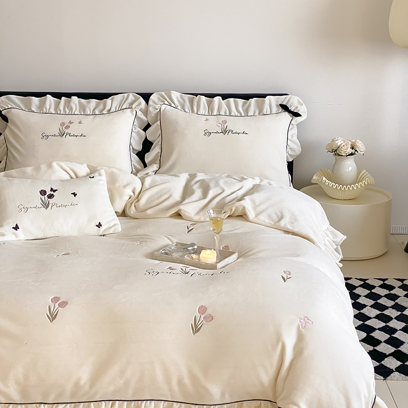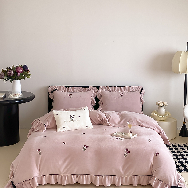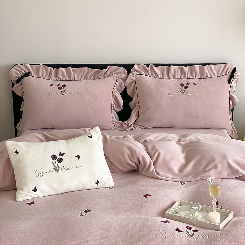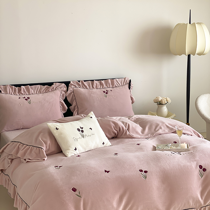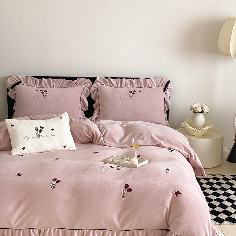 MIU缪家居 2024新款厚实保暖牛奶绒四件套-挚爱 挚爱-豆沙粉