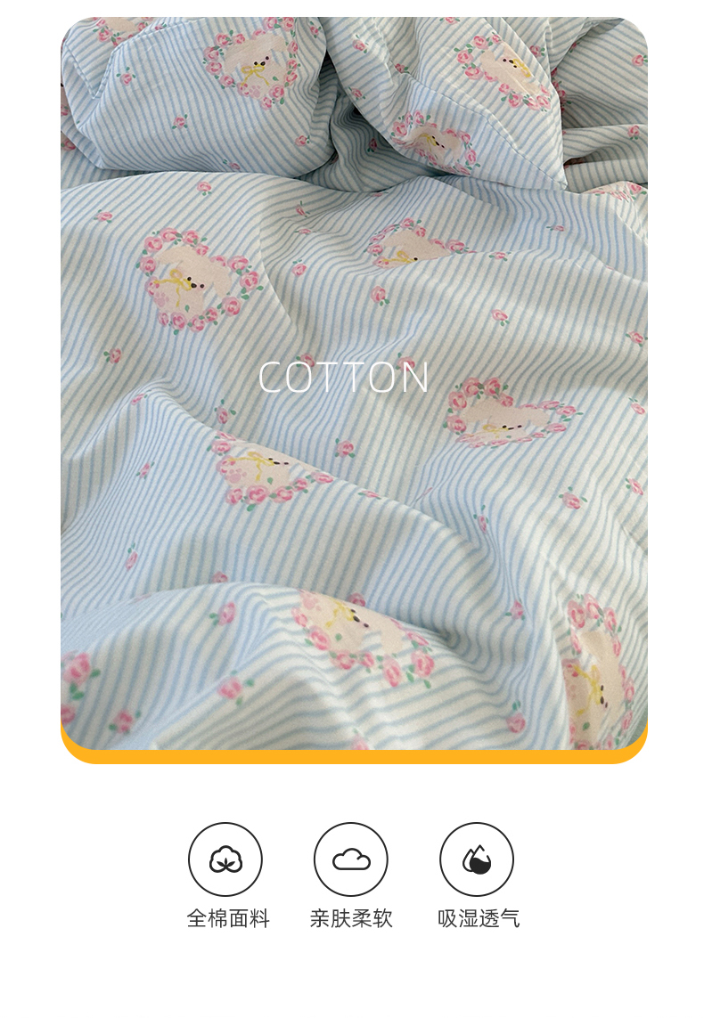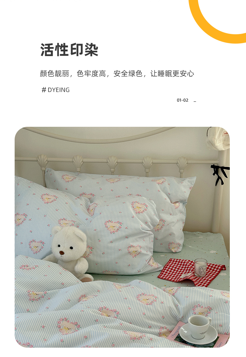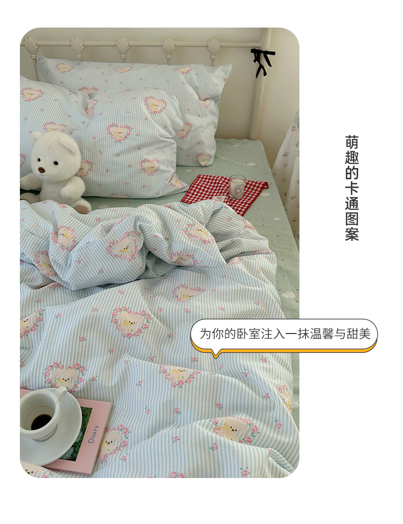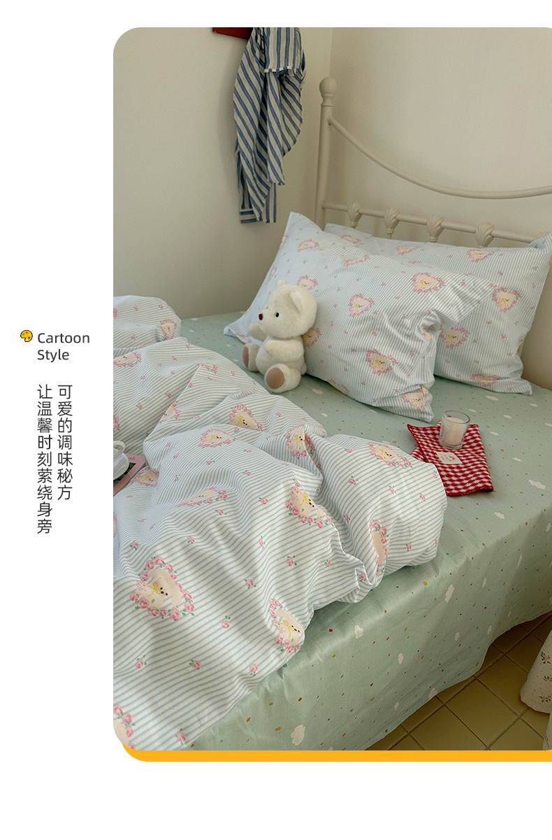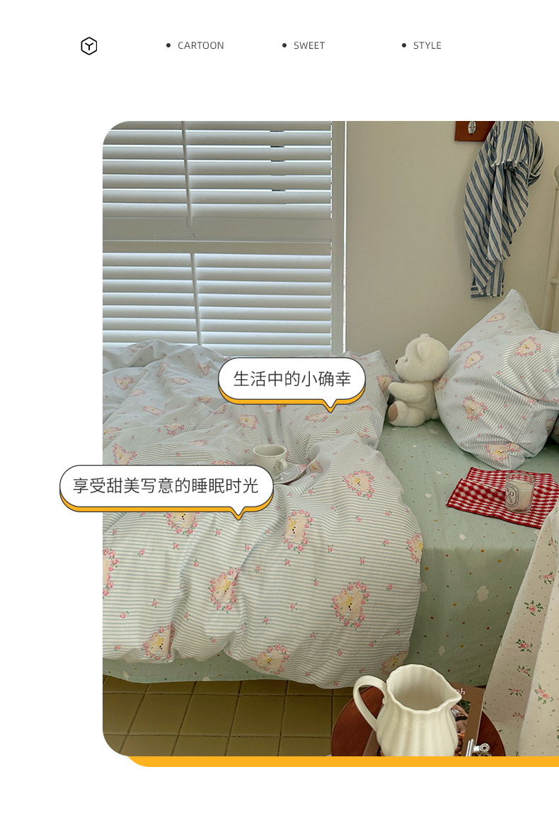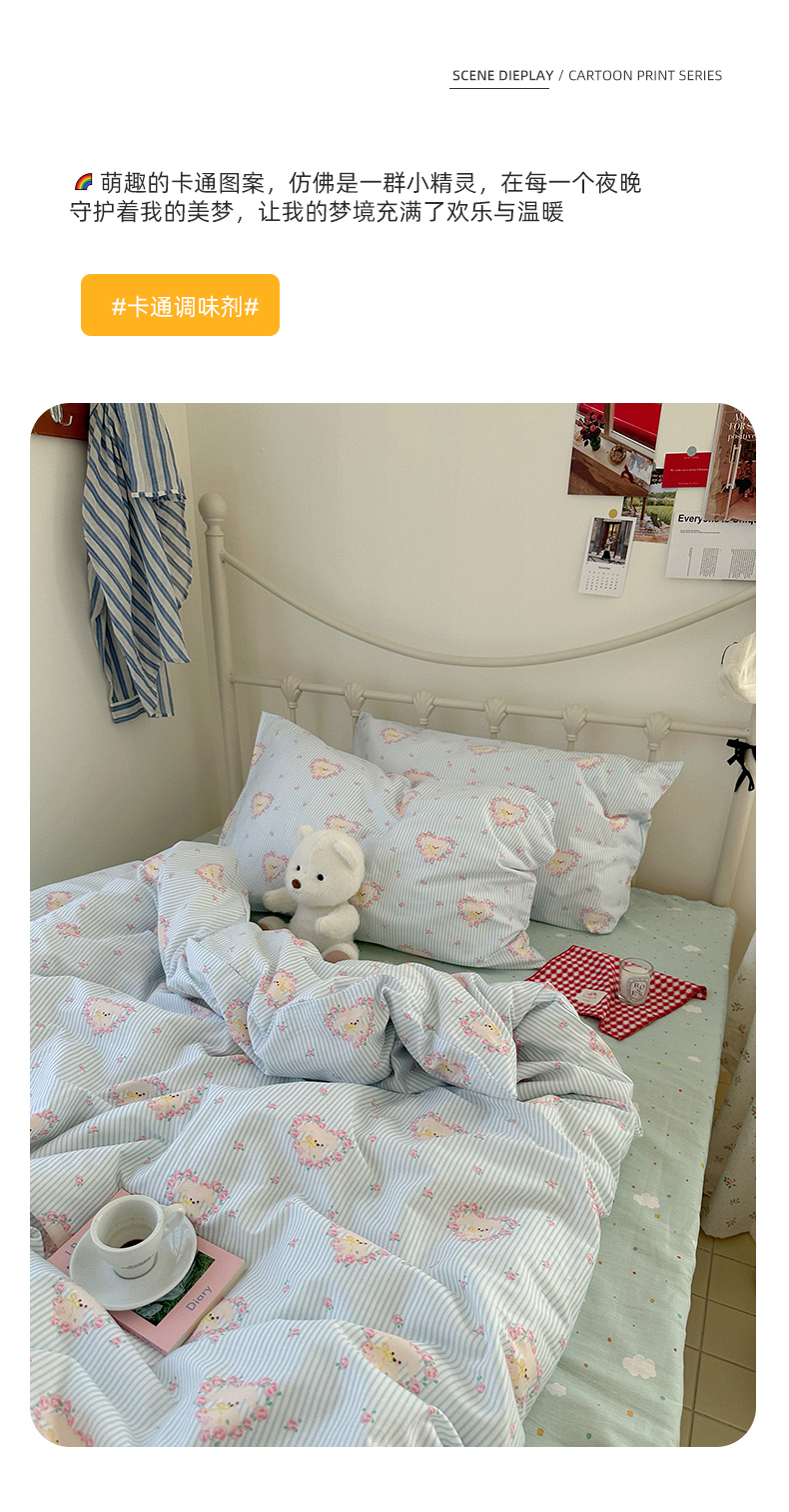 (总)尺素 2025新款纯棉卡通ins风四件套可爱少女风全棉被套纯色1.8床笠加大床单学生1.2三件套,告白熊--浅蓝,格调粉--奶黄,格调粉--桃粉,蓝白情书--浅蓝,清梦--冰沙绿,清梦--浅黄,小熊软糖--焦糖