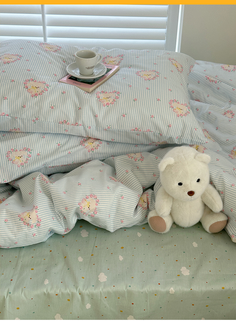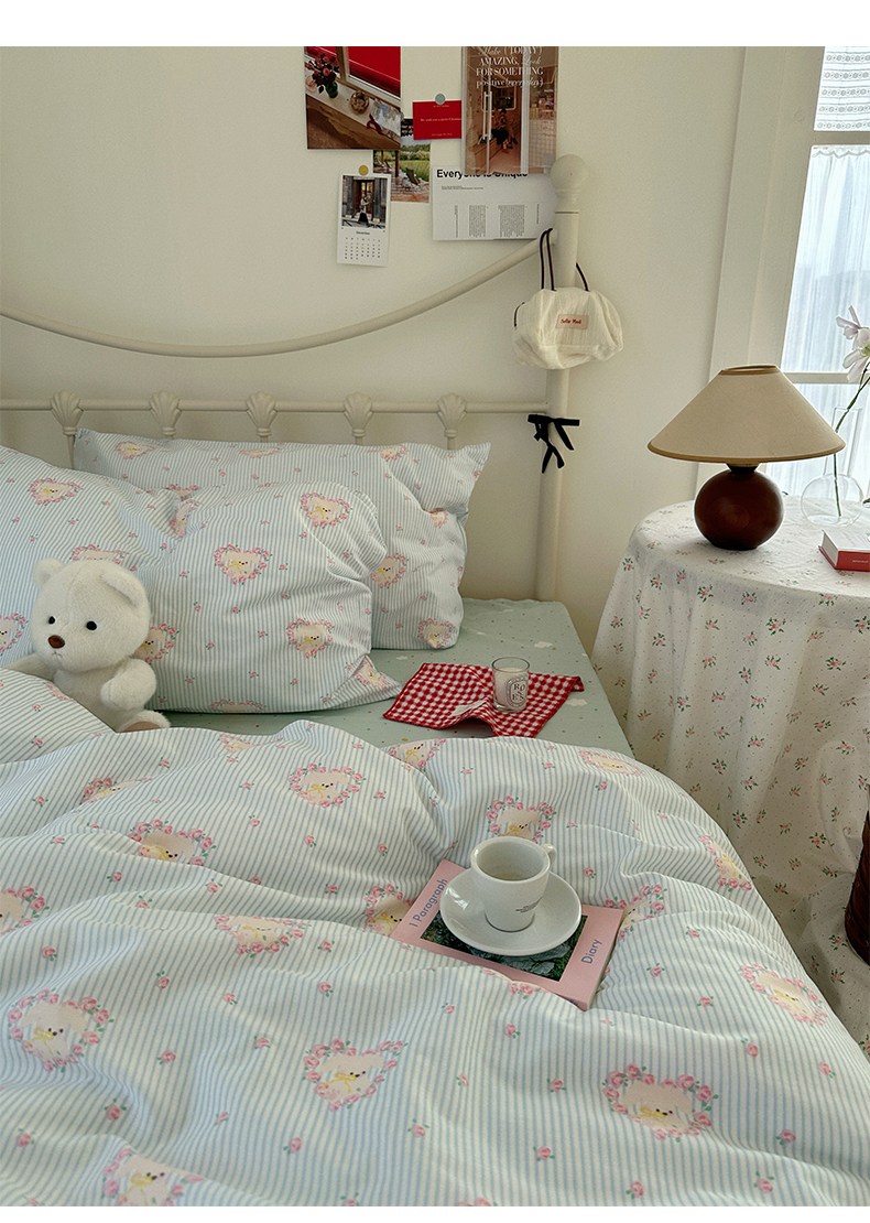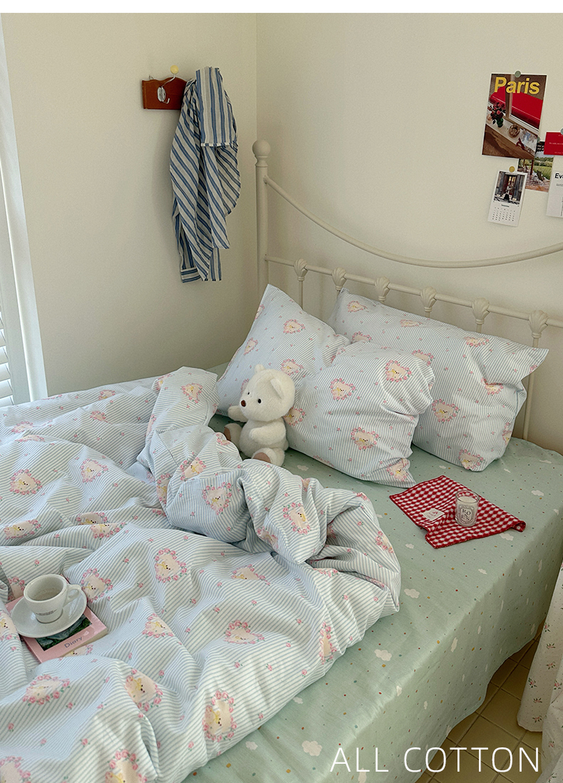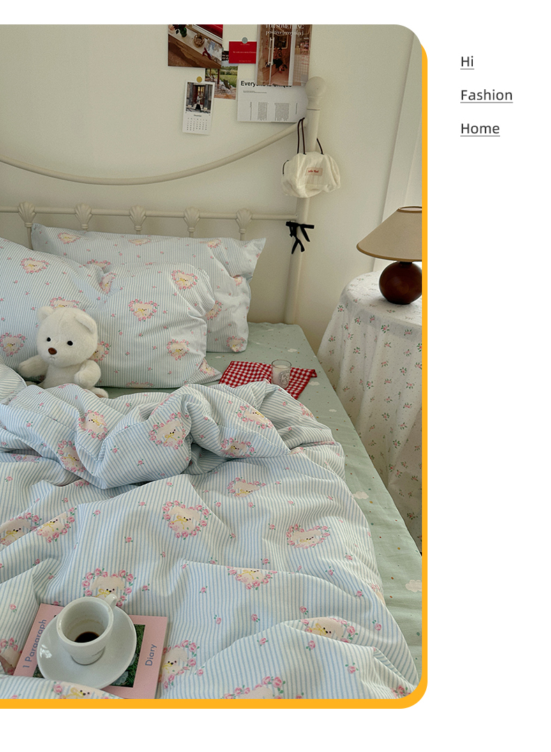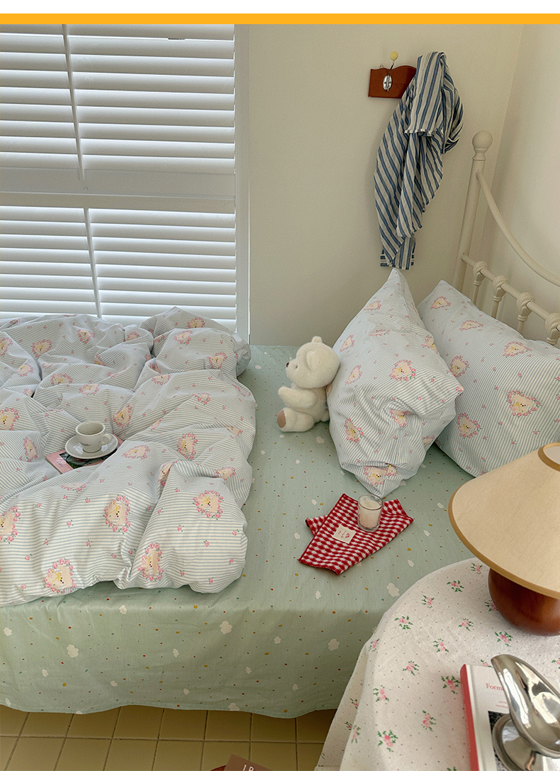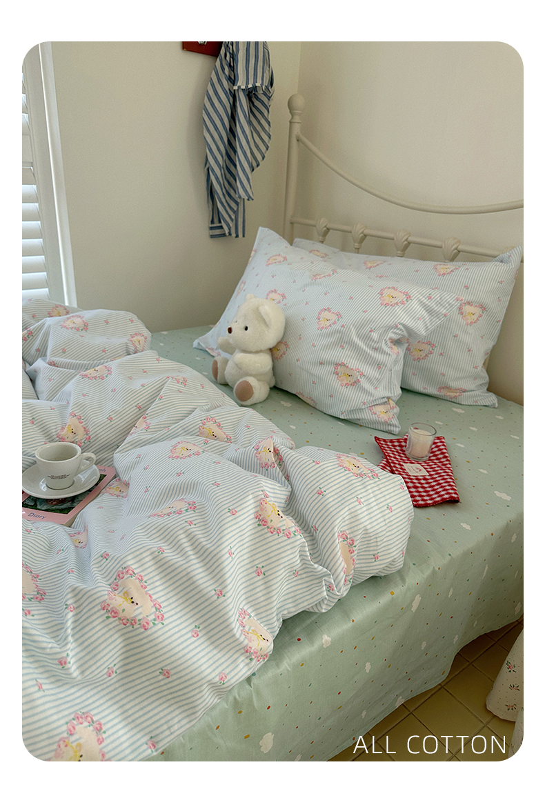 (总)尺素 2025新款纯棉卡通ins风四件套可爱少女风全棉被套纯色1.8床笠加大床单学生1.2三件套,告白熊--浅蓝,格调粉--奶黄,格调粉--桃粉,蓝白情书--浅蓝,清梦--冰沙绿,清梦--浅黄,小熊软糖--焦糖