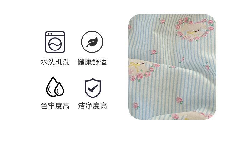 商品名称:尺素 2024新款全棉印花a类卡通儿童四件套纯棉花卉双人被套学生宿舍三件套 花花兔
