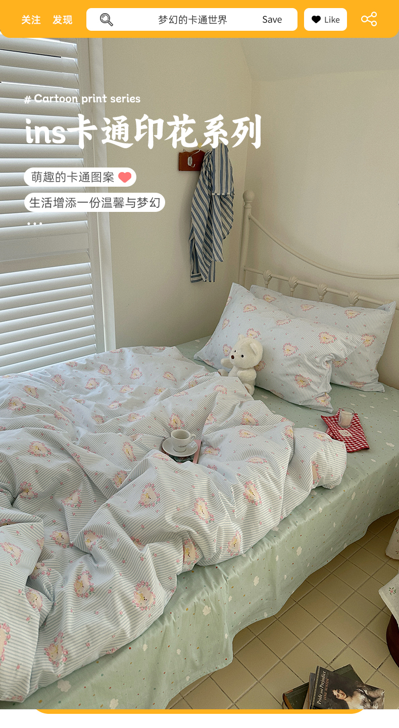 (总)尺素 全棉40支喷气13372韩国ins设计师四件套,花舞,篱落粉,篱落黄,落英,派对,童趣,涂鸦,小粉兔,雪地熊