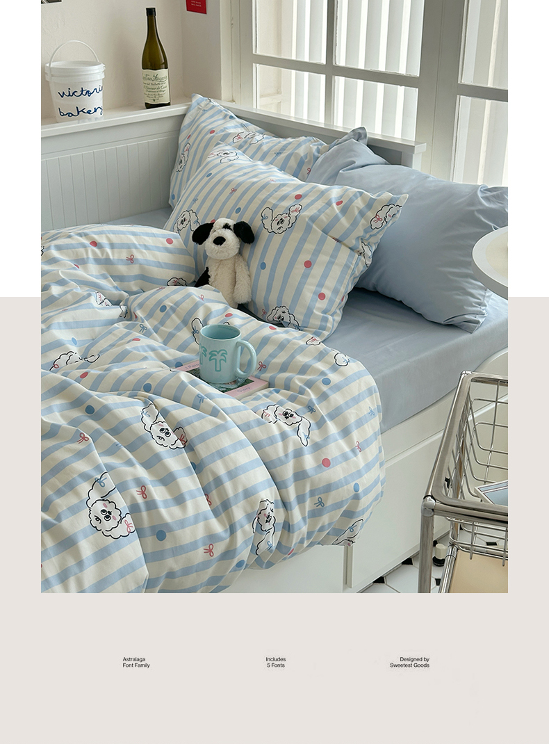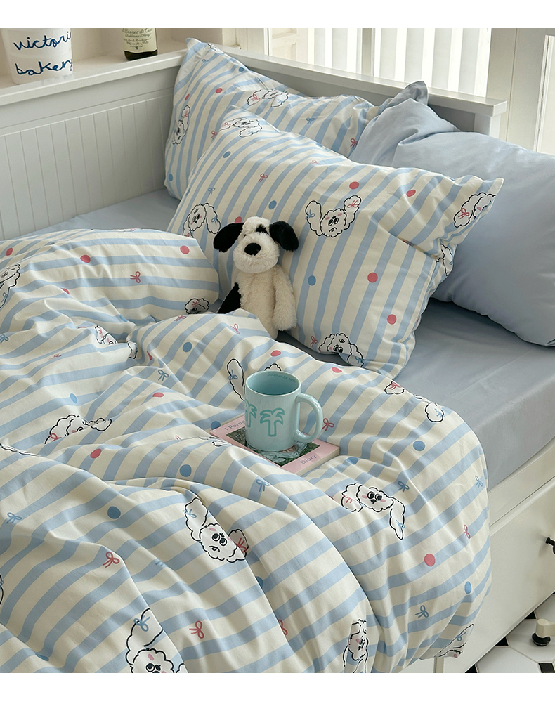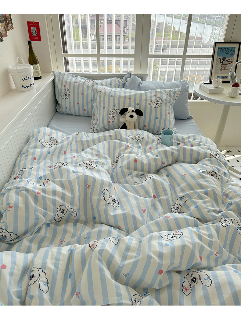 尺素 2024韩国ins风少女粉被套纯棉卡通四件套小清新蝴蝶结被套240*250床单学生宿舍三件套 可爱多蓝(浅蓝)