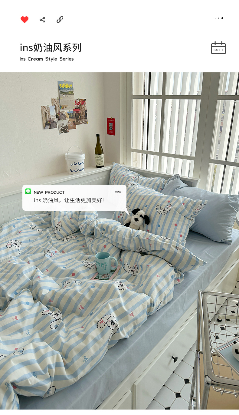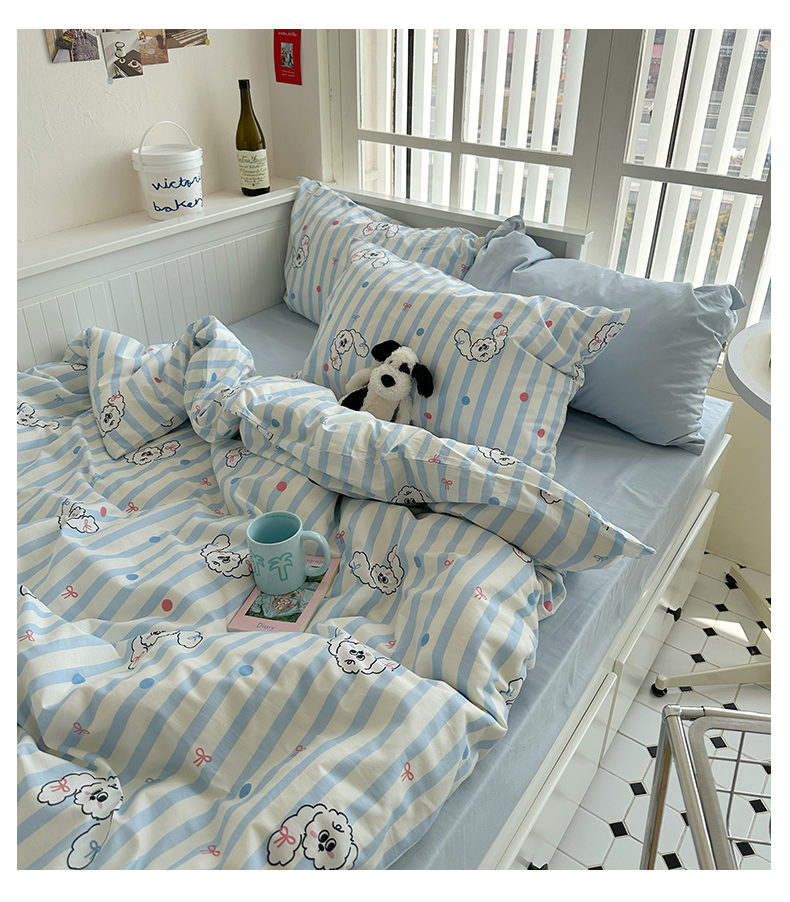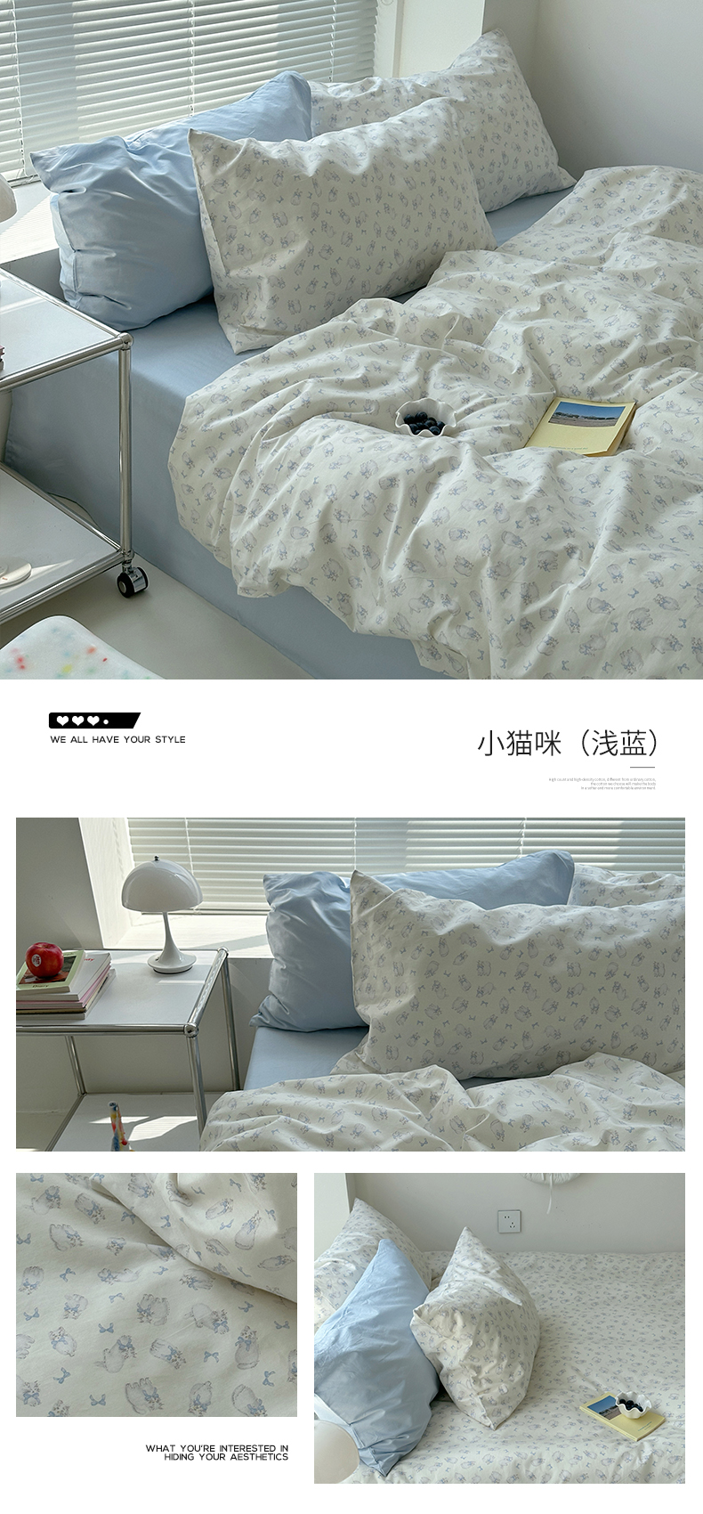 (总)尺素 2025新款纯棉卡通ins风四件套可爱少女风全棉被套纯色1.8床笠加大床单学生1.2三件套,告白熊--浅蓝,格调粉--奶黄,格调粉--桃粉,蓝白情书--浅蓝,清梦--冰沙绿,清梦--浅黄,小熊软糖--焦糖