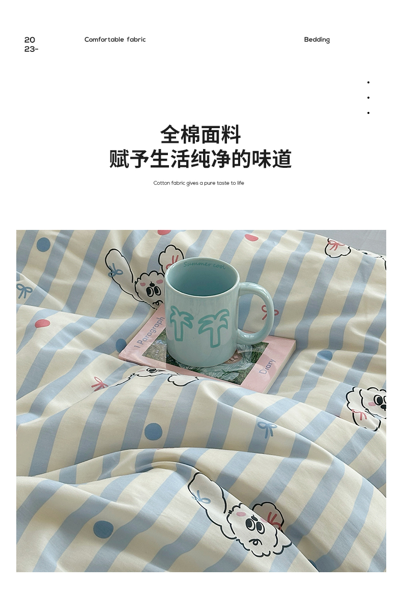 (总)尺素 全棉40支喷气13372韩国ins设计师四件套,花舞,篱落粉,篱落黄,落英,派对,童趣,涂鸦,小粉兔,雪地熊