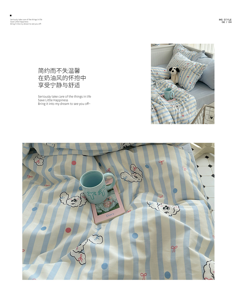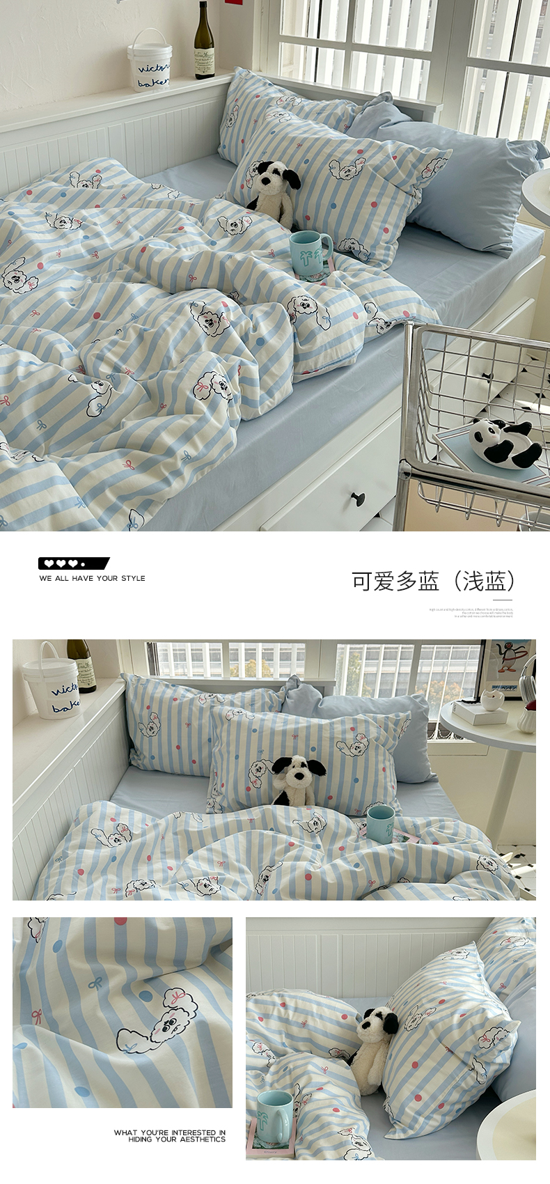 商品名称:尺素 2024韩国ins风少女粉被套纯棉卡通四件套小清新蝴蝶结被套240*250床单学生宿舍三件套 可爱多蓝(浅蓝)