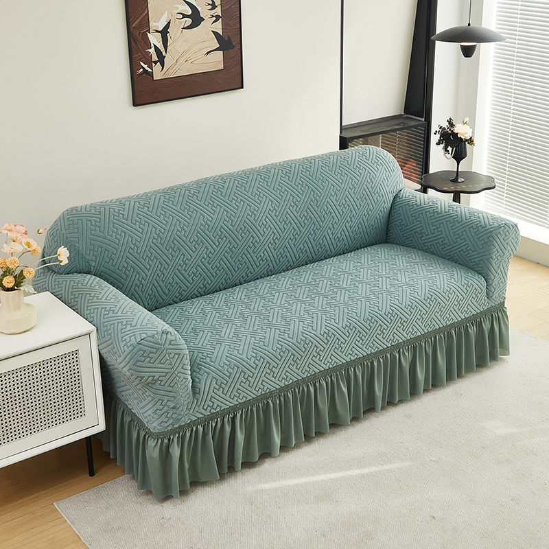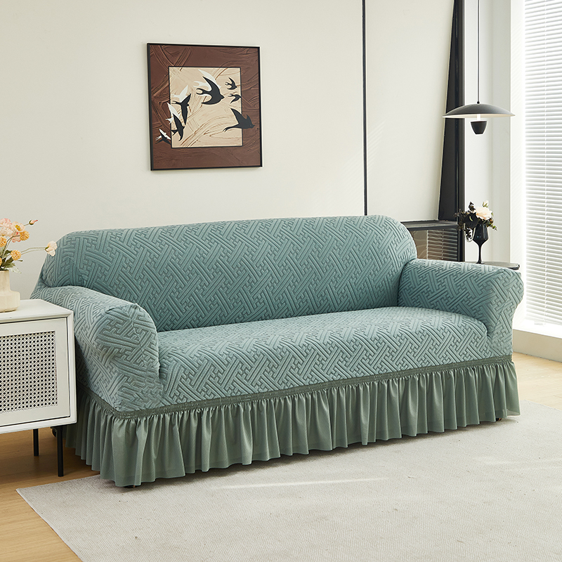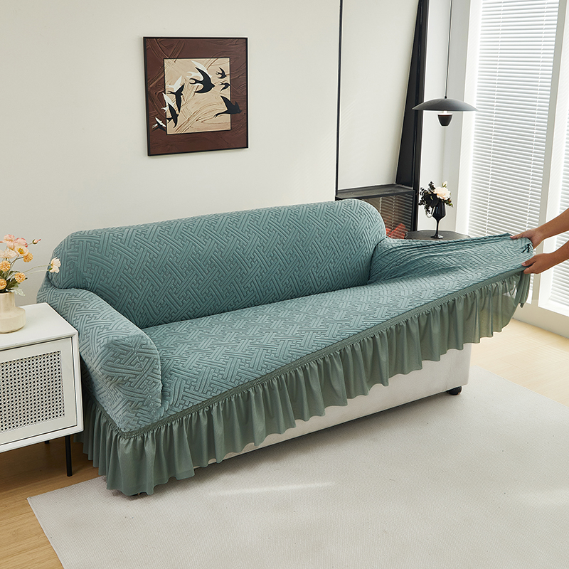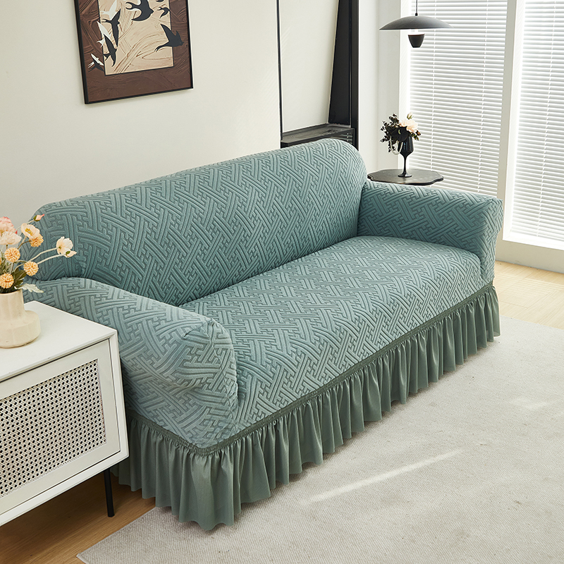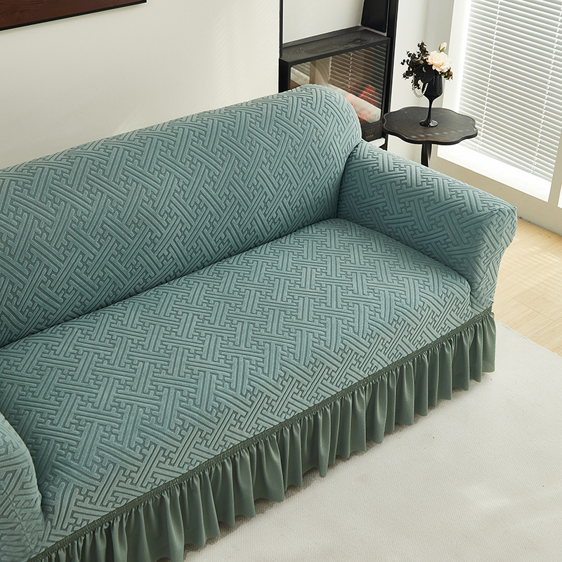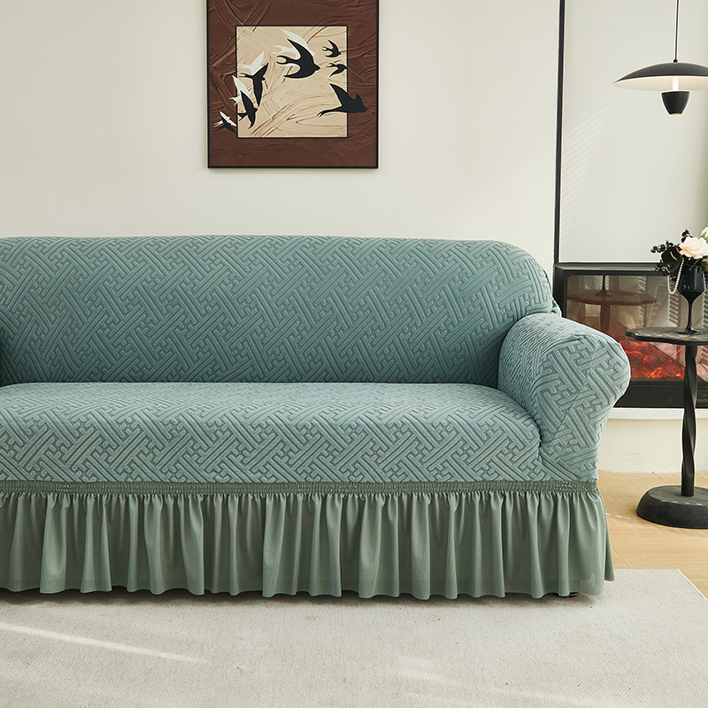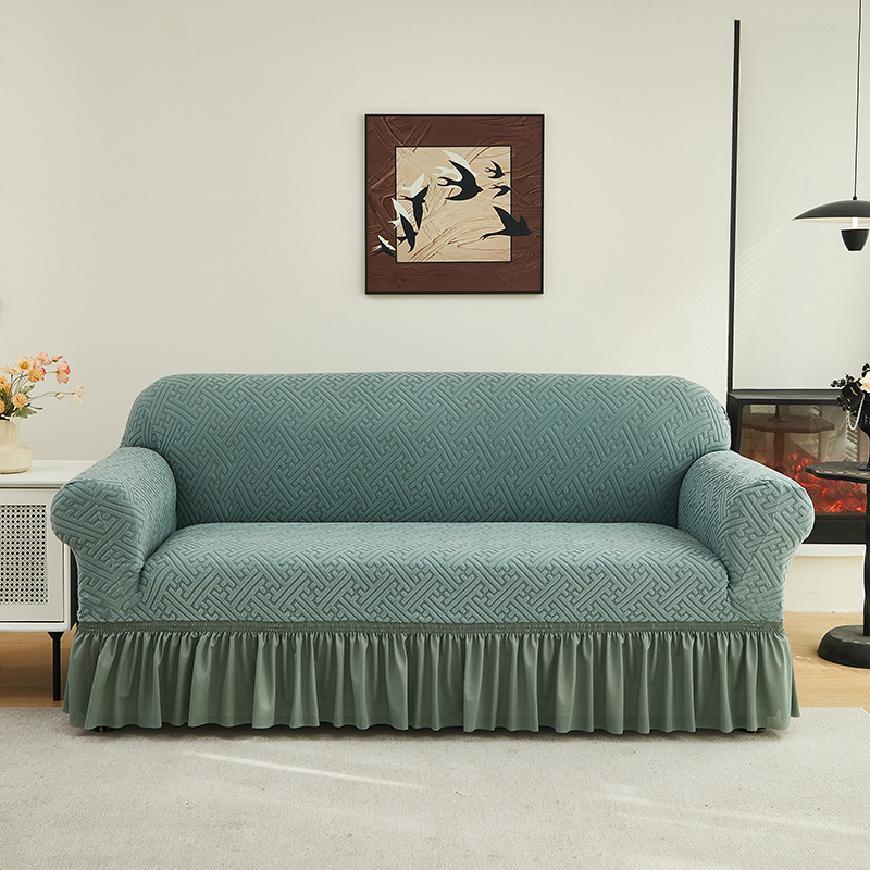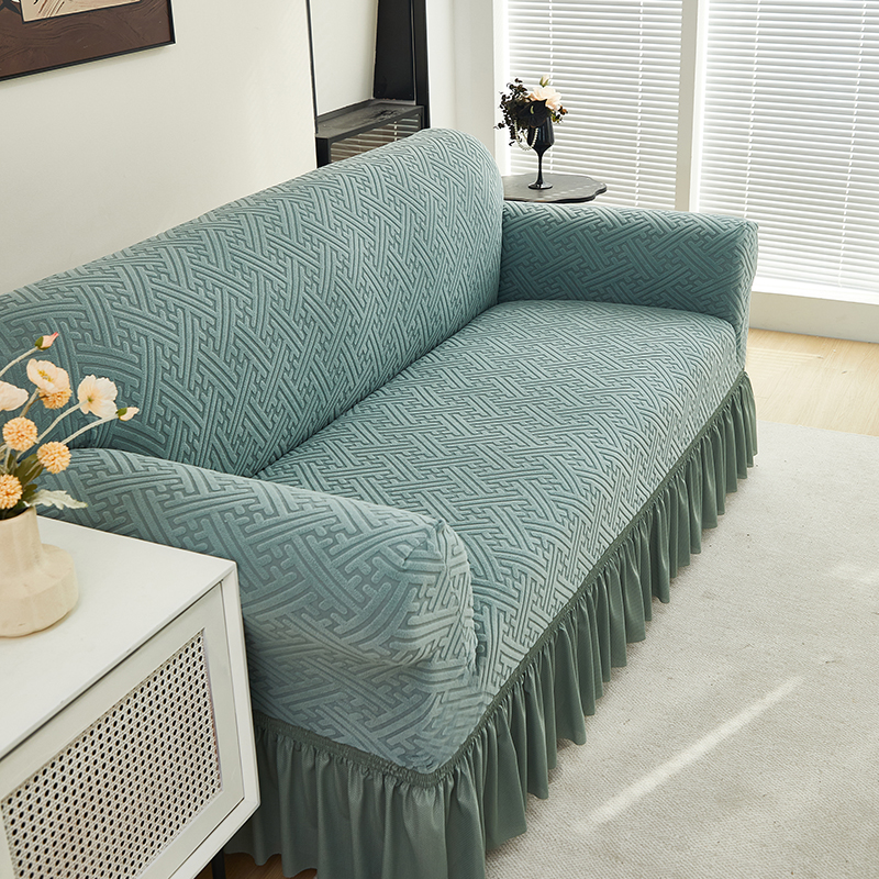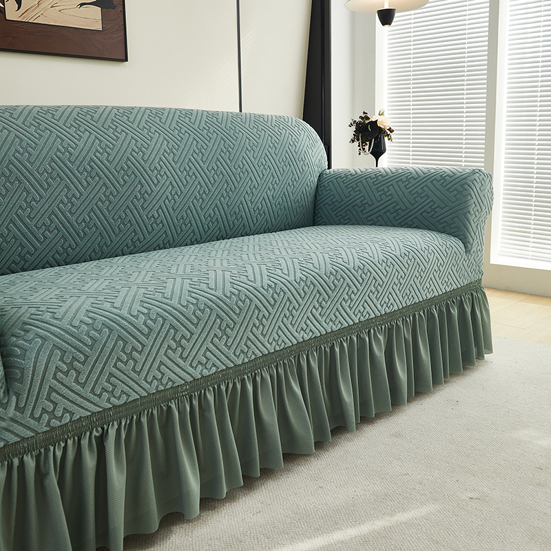 商品名称:共鸣沙发套 2024新款拉绒提花系列沙发套(裙摆款) 拉绒墨绿