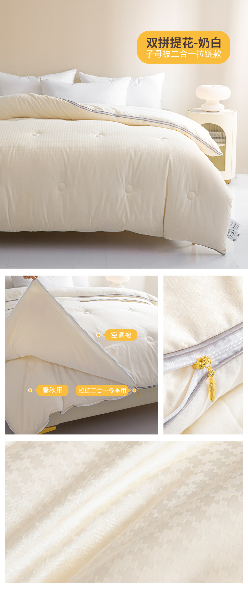 • 91家纺网 家纺一手货源 找家纺 (买家秀爆款不断货)A类母婴级无染针织双拼纯色大豆被子春秋冬被大豆纤维被子被芯大豆被子大豆提花子母被 双拼提花-奶玉