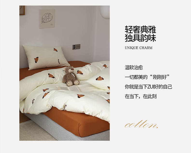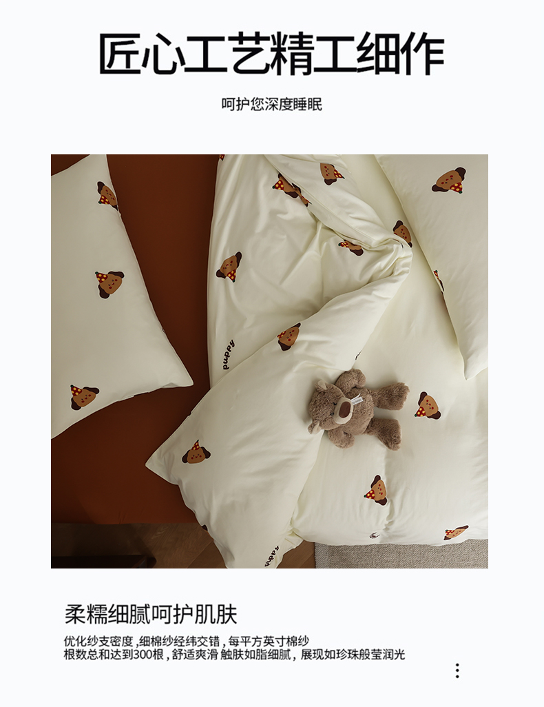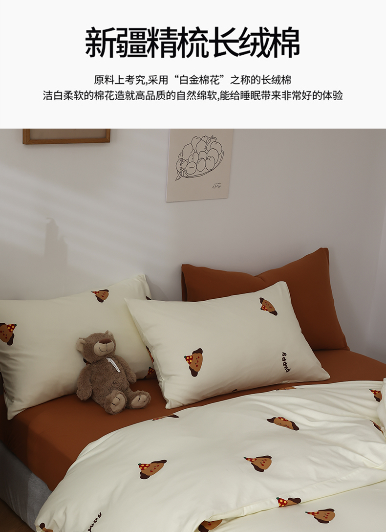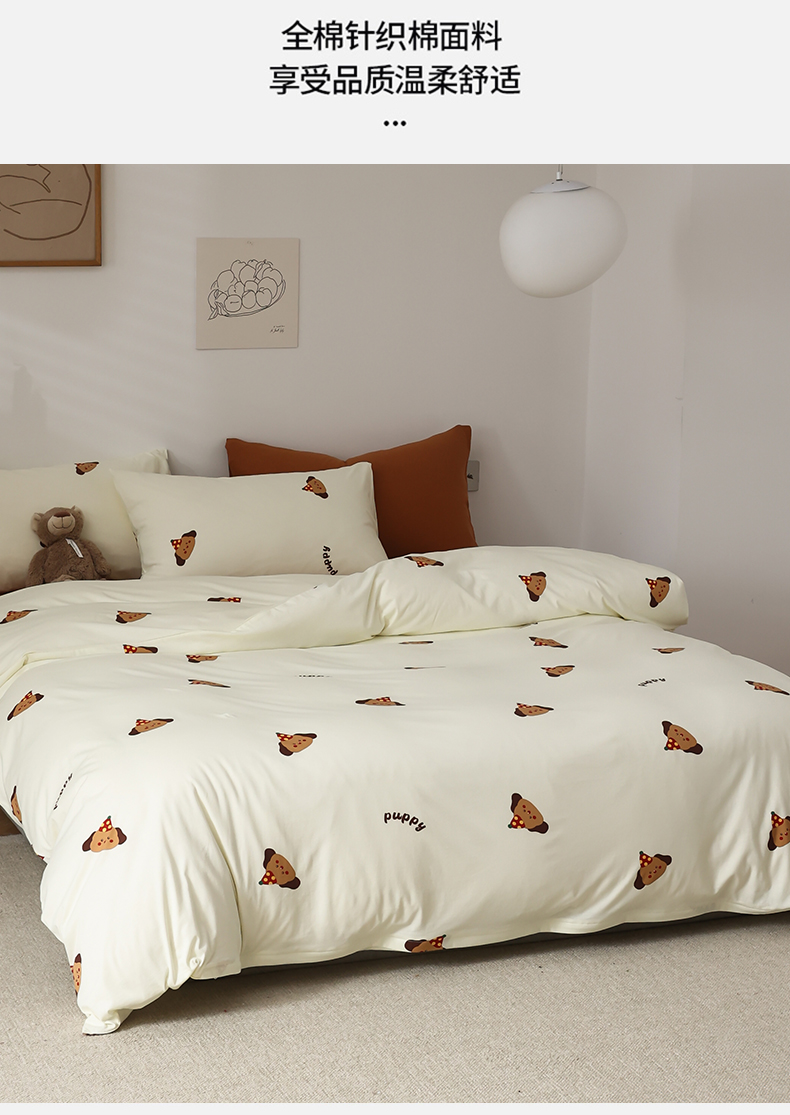 商品名称:绫韵家纺 2025春夏新品母婴A类全棉纯棉针织棉软糯糯小可爱卡通床单款四件套 布丁