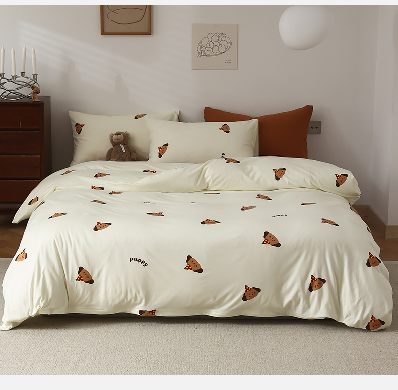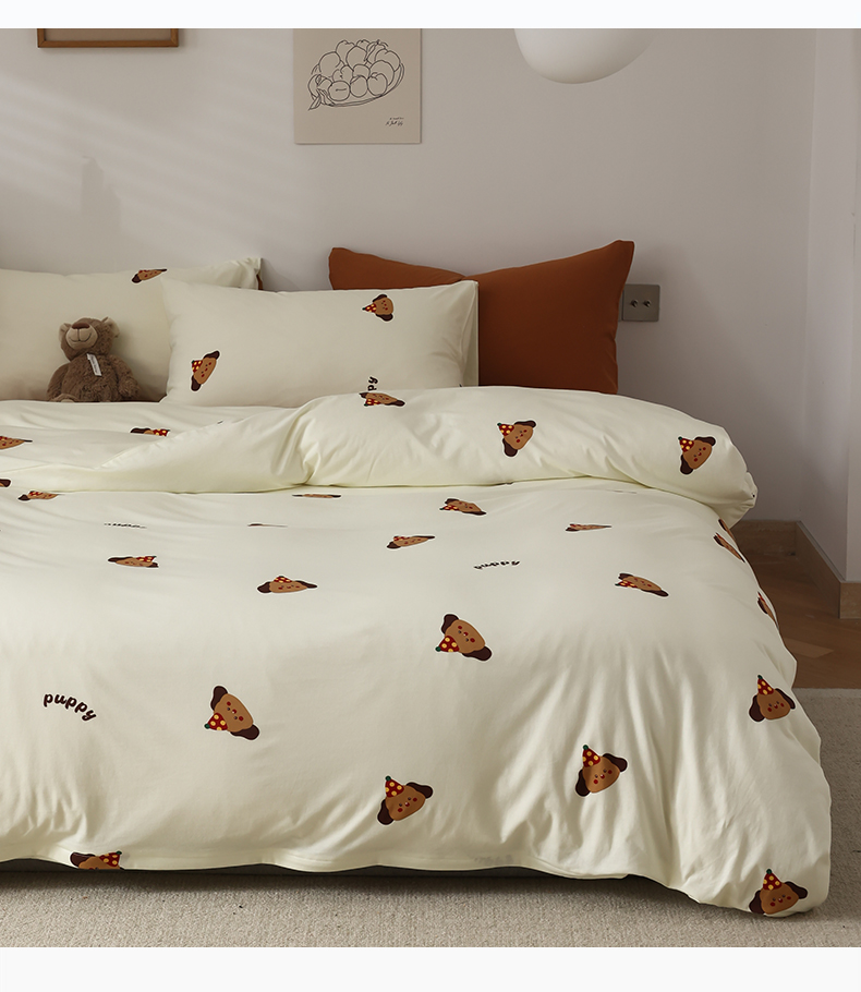 绫韵家纺 2025春夏新品母婴A类全棉纯棉针织棉软糯糯小可爱卡通床单款四件套 布丁