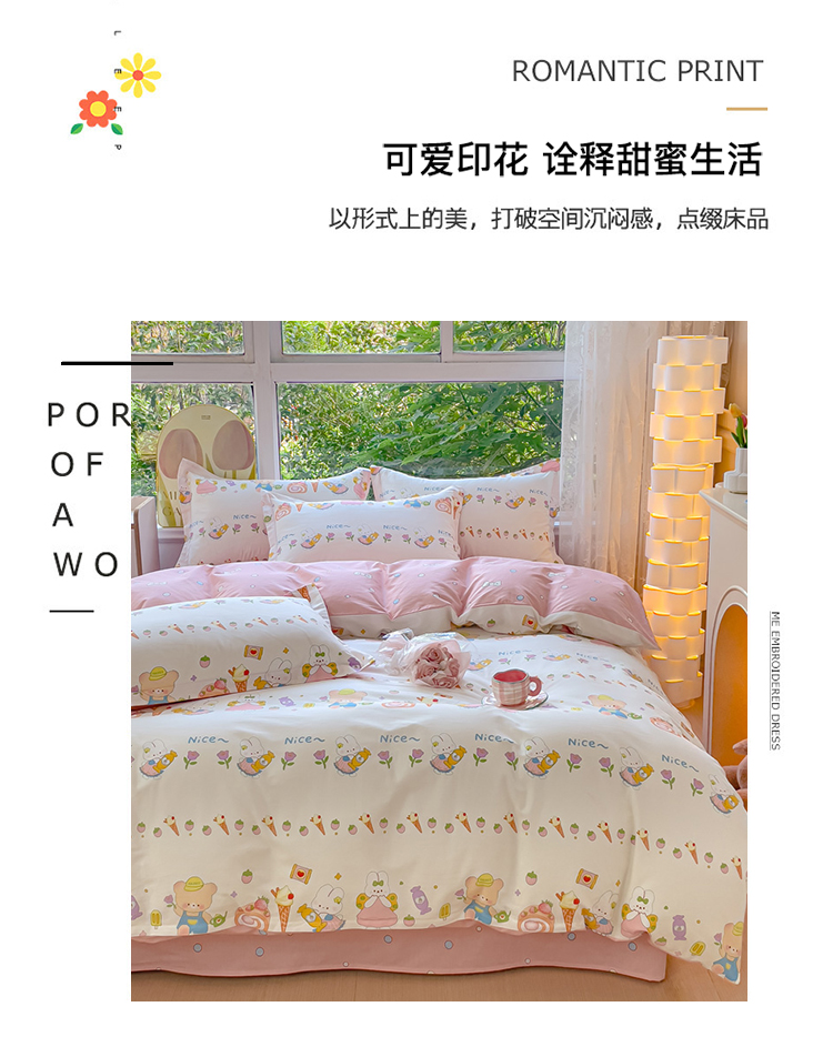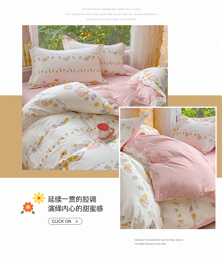 当前位置: 91家纺网 > 商品网购 > 床品套件 > 四件套 > 全棉普通四件套 > 2023-2024新款13070全棉好卖花型套件系列-四件套 糖水日记