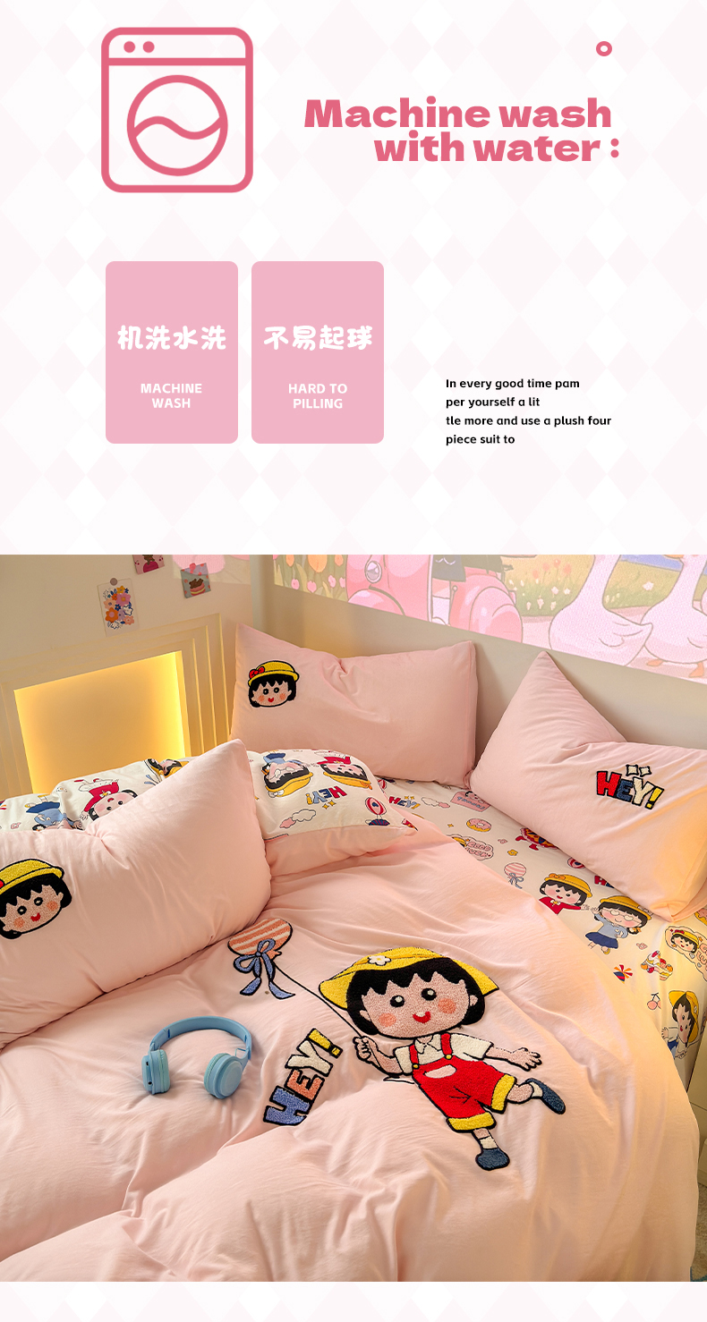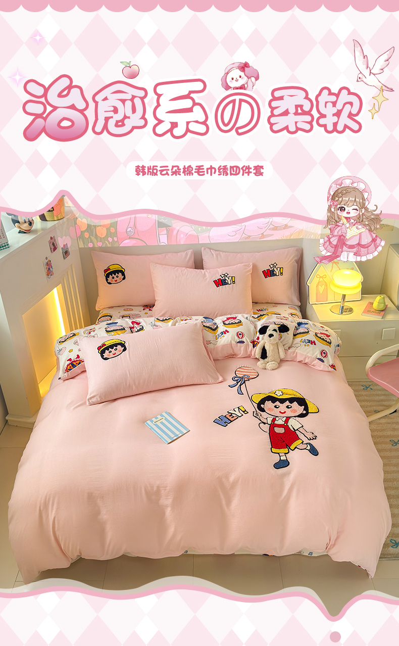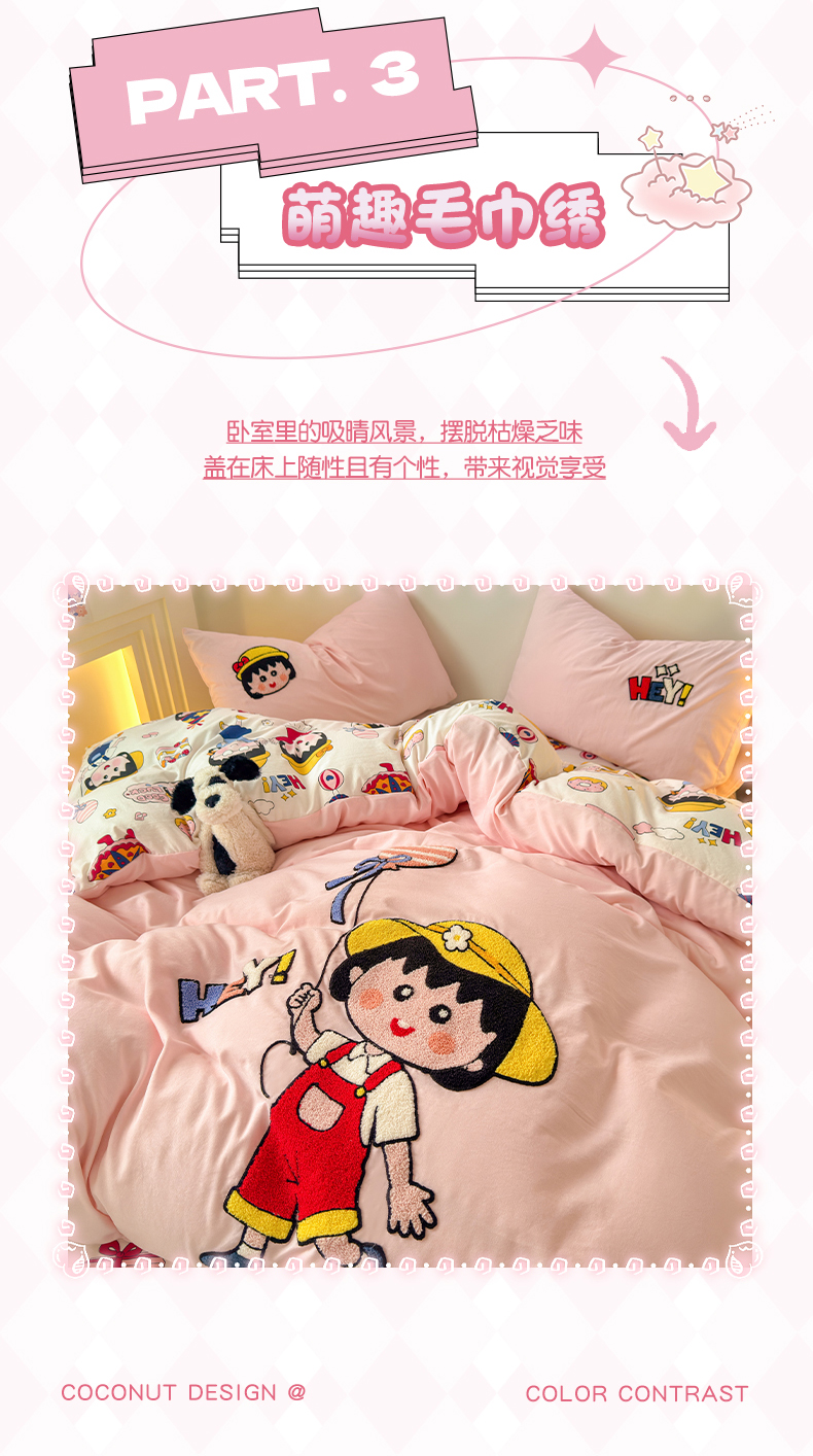 当前位置: 91家纺网 > 商品网购 > 床品套件 > 四件套 > 其它四件套 > 2025新款糯糯棉(110克)大版卡通毛巾绣四件套(提供买家绣)-场景二 小丸子去郊游