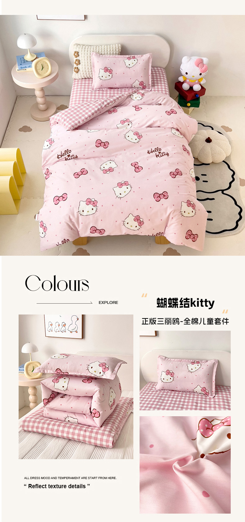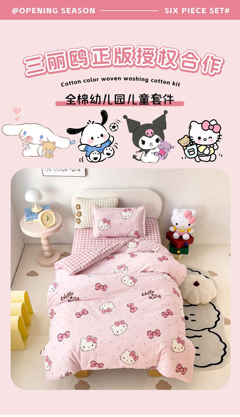 当前位置: 91家纺网 > 商品网购 > 床品套件 > 多件套 > 多件套 > 芭伯妮 2025新款全棉三丽鸥幼儿园三件套 儿童宝宝午睡套件 含芯六件套 蝴蝶结kitty