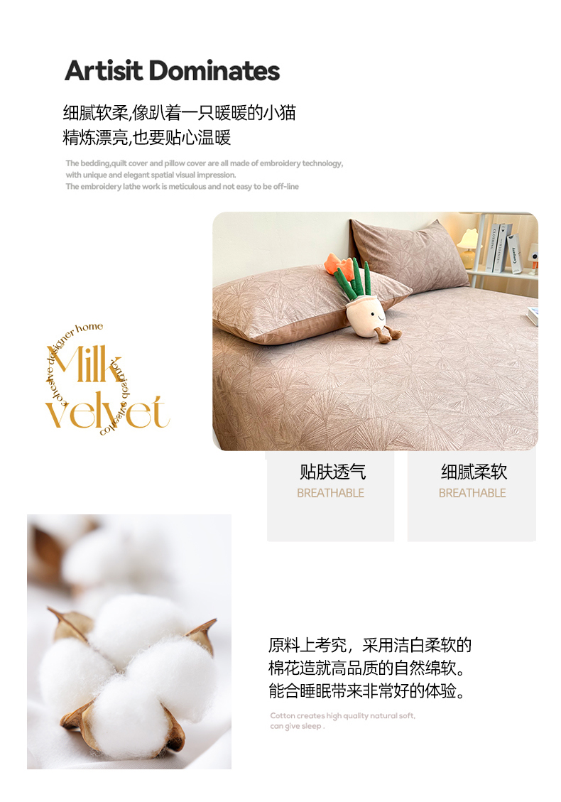 (总)简宜家居(朝初家纺) 2025新款印花兔兔绒+纯色牛奶绒双拼四件套,蝶影暖绒,米绒花絮,墨绒花-奶白,秋枝果绿,秋枝焦糖,一支秀-咖