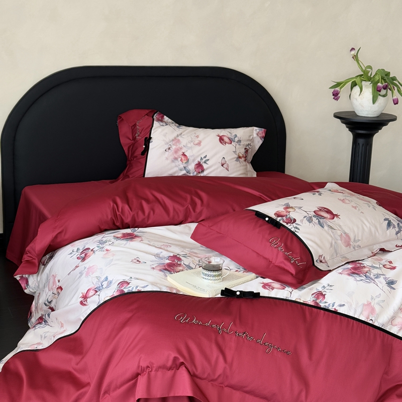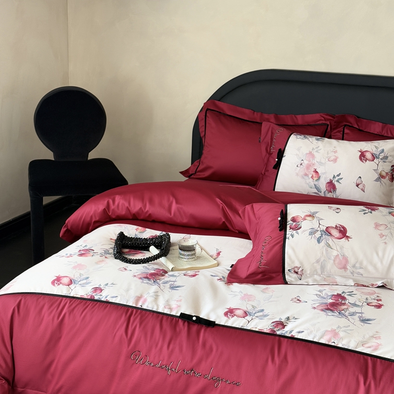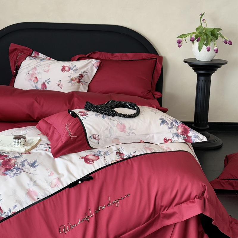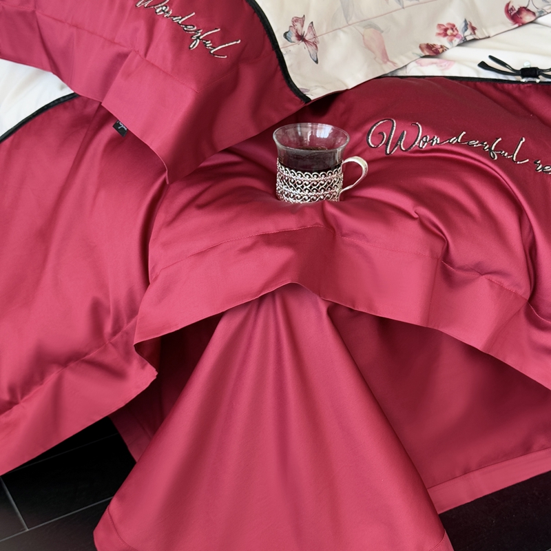 商品名称:佳汐蓝家纺 2025新款100支澳棉刺绣宽边四件套-榴香 榴香-红色
