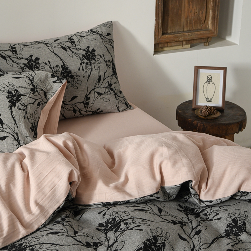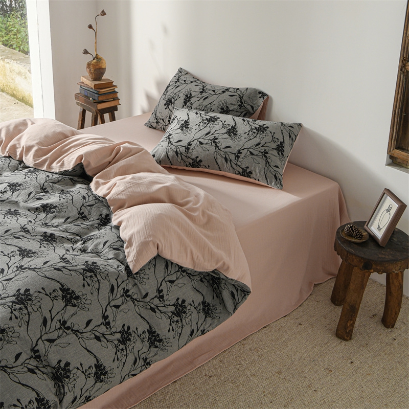 商品名称:简家居 2025新款60支色织空气棉四件套 繁花-粉