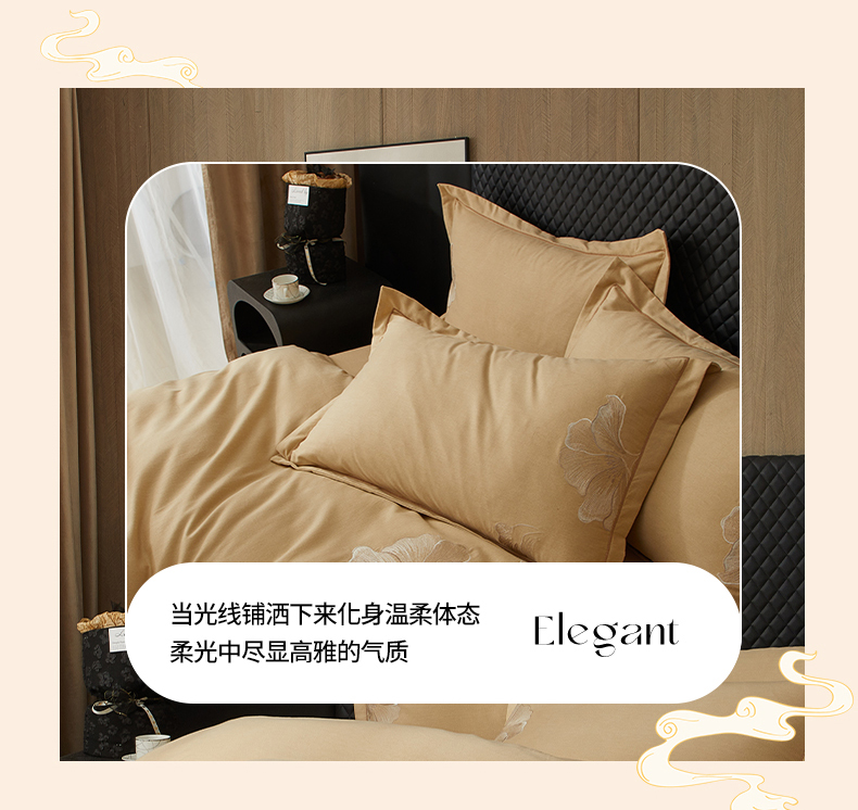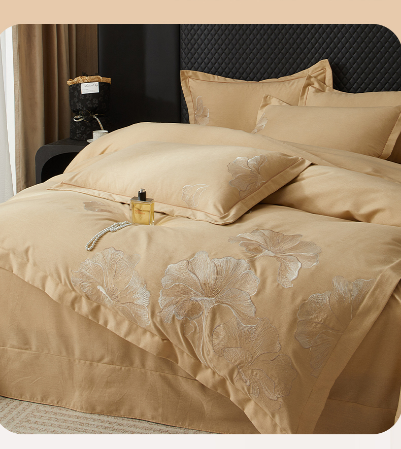 雲归梦 2025新款全棉加厚磨毛绣花宽边工艺四件套-璀璨人生 璀璨人生-浅棕