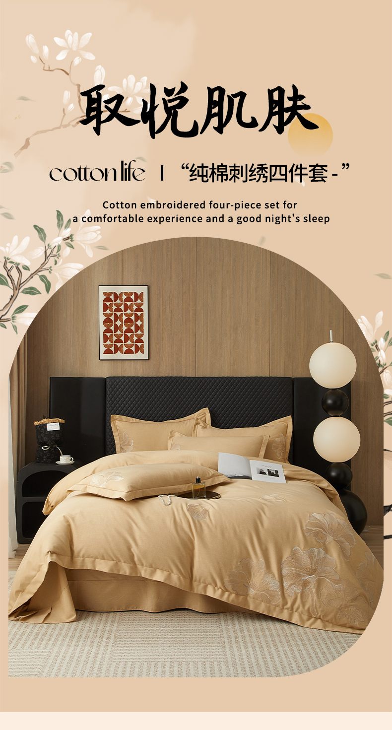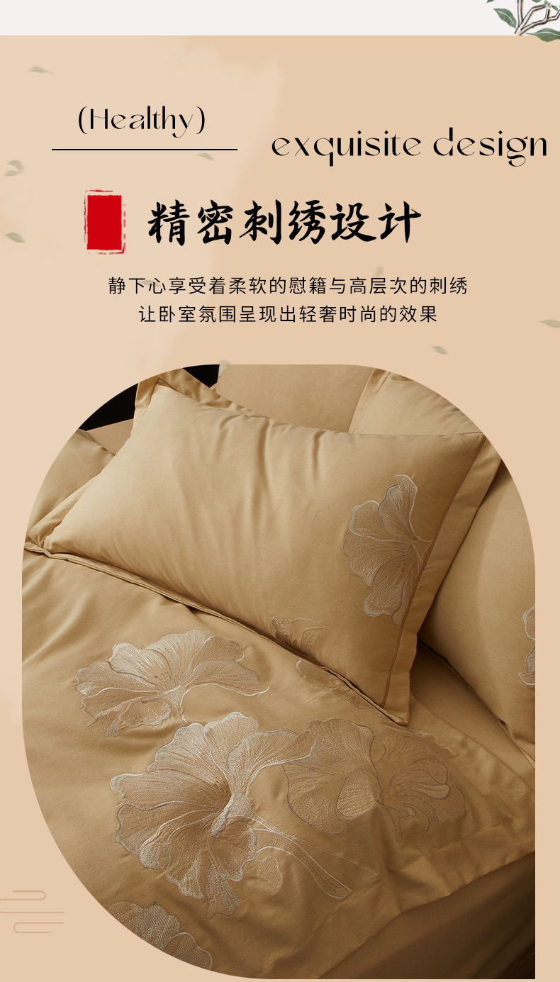 (总)雲归梦 2021新款全棉生态磨毛刺绣四件套,慕思-橙色,慕思-粉紫,慕思-灰,慕思-米黄,慕思-青绿,慕思-天蓝