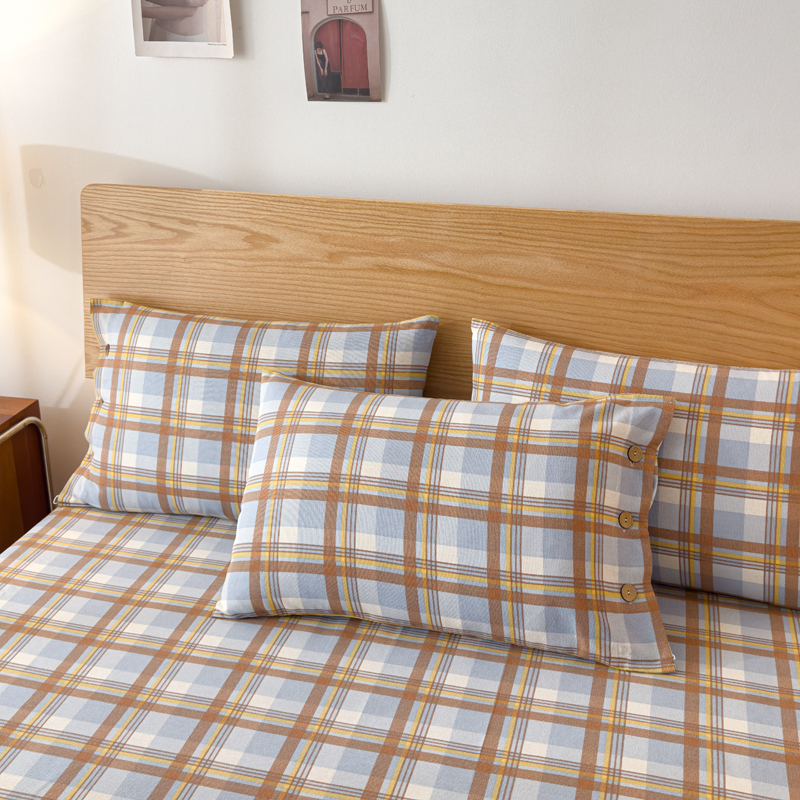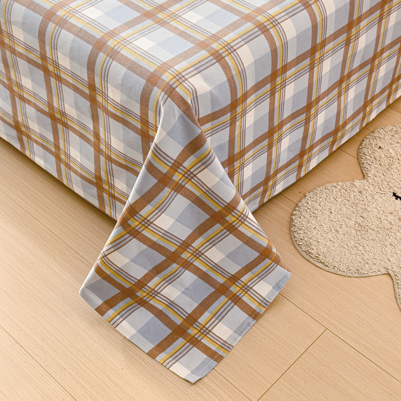 仟网汇 2025新款无印纽扣原棉老粗布三件套 咖小格