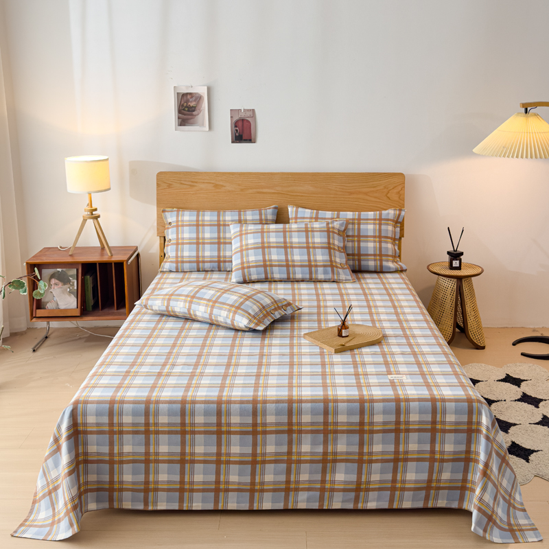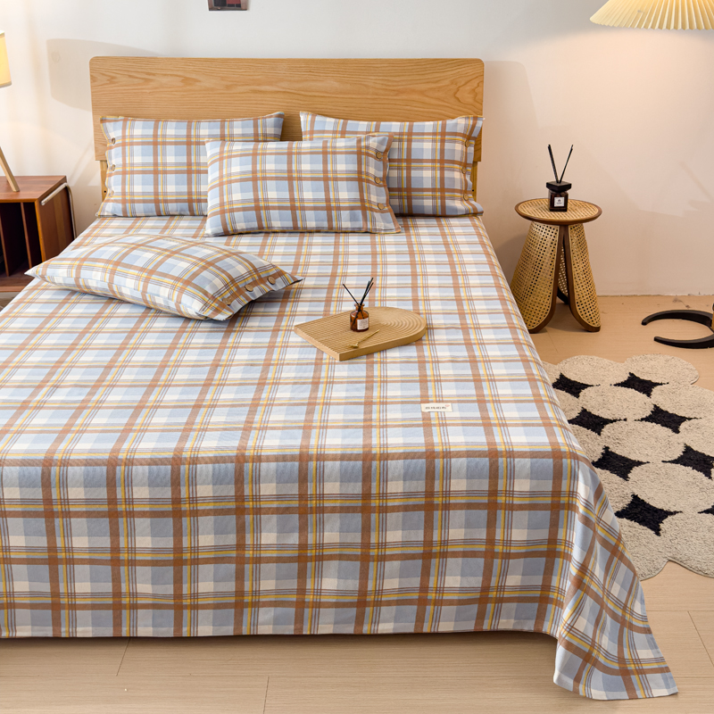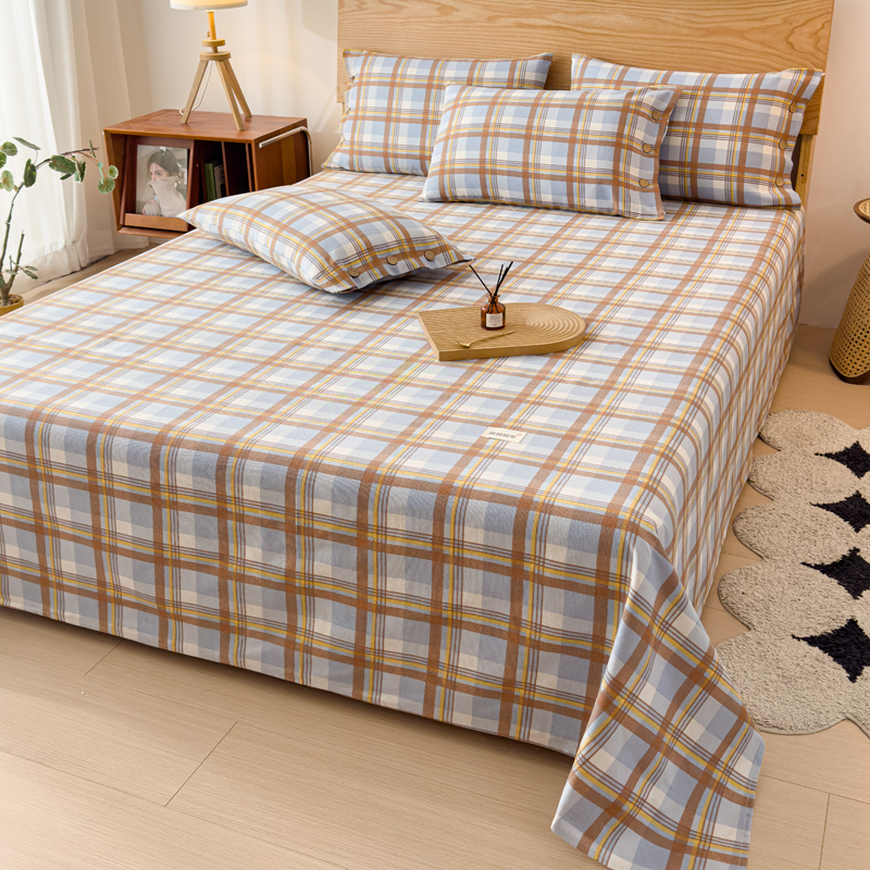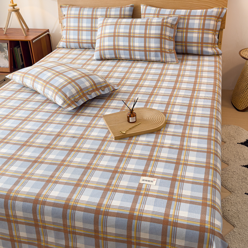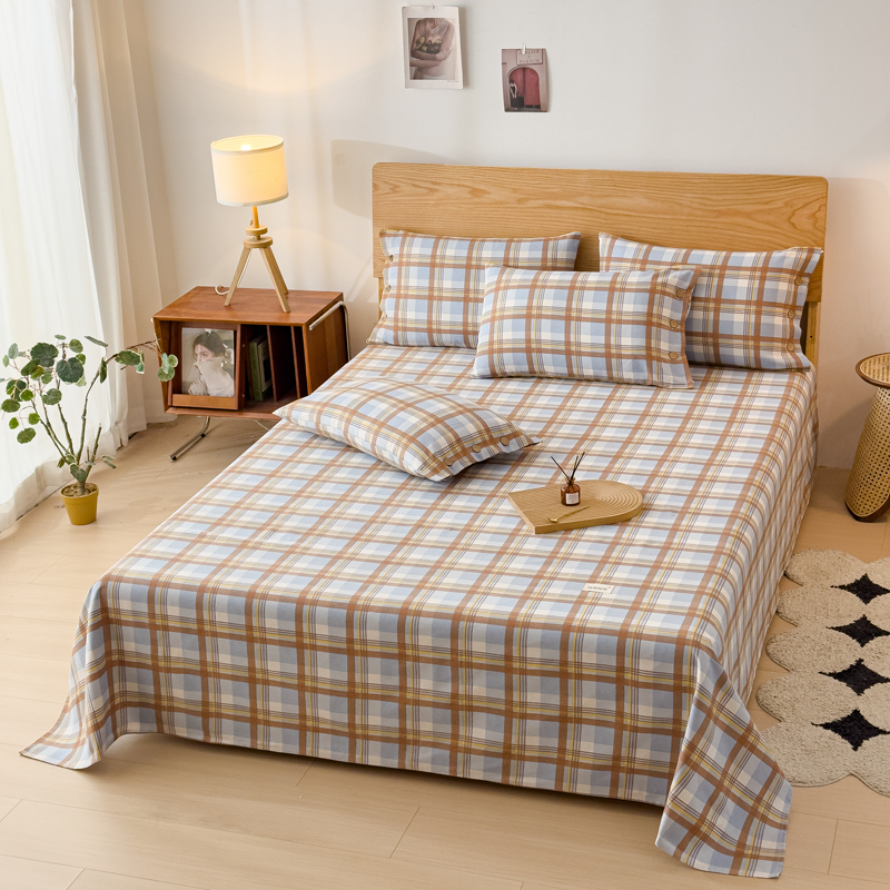 商品名称:仟网汇 2025新款无印纽扣原棉老粗布三件套 咖小格
