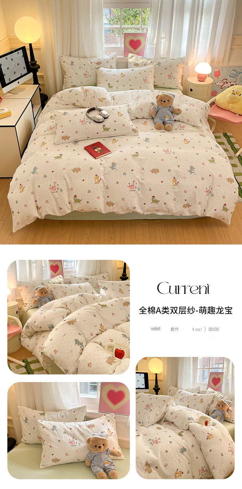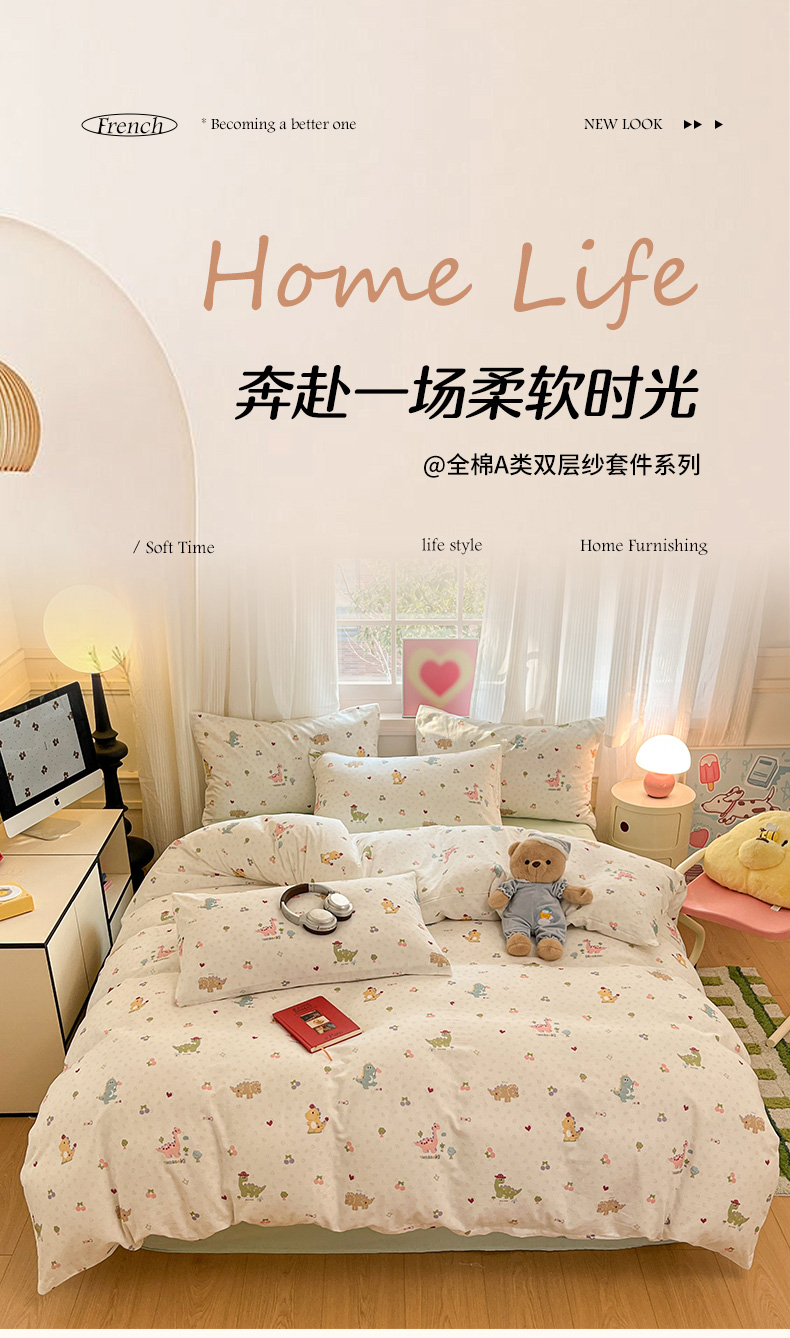 当前位置: 91家纺网 > 商品网购 > 床品套件 > 四件套 > 博雅 2025新款全棉A类双层纱四件套 萌趣龙宝