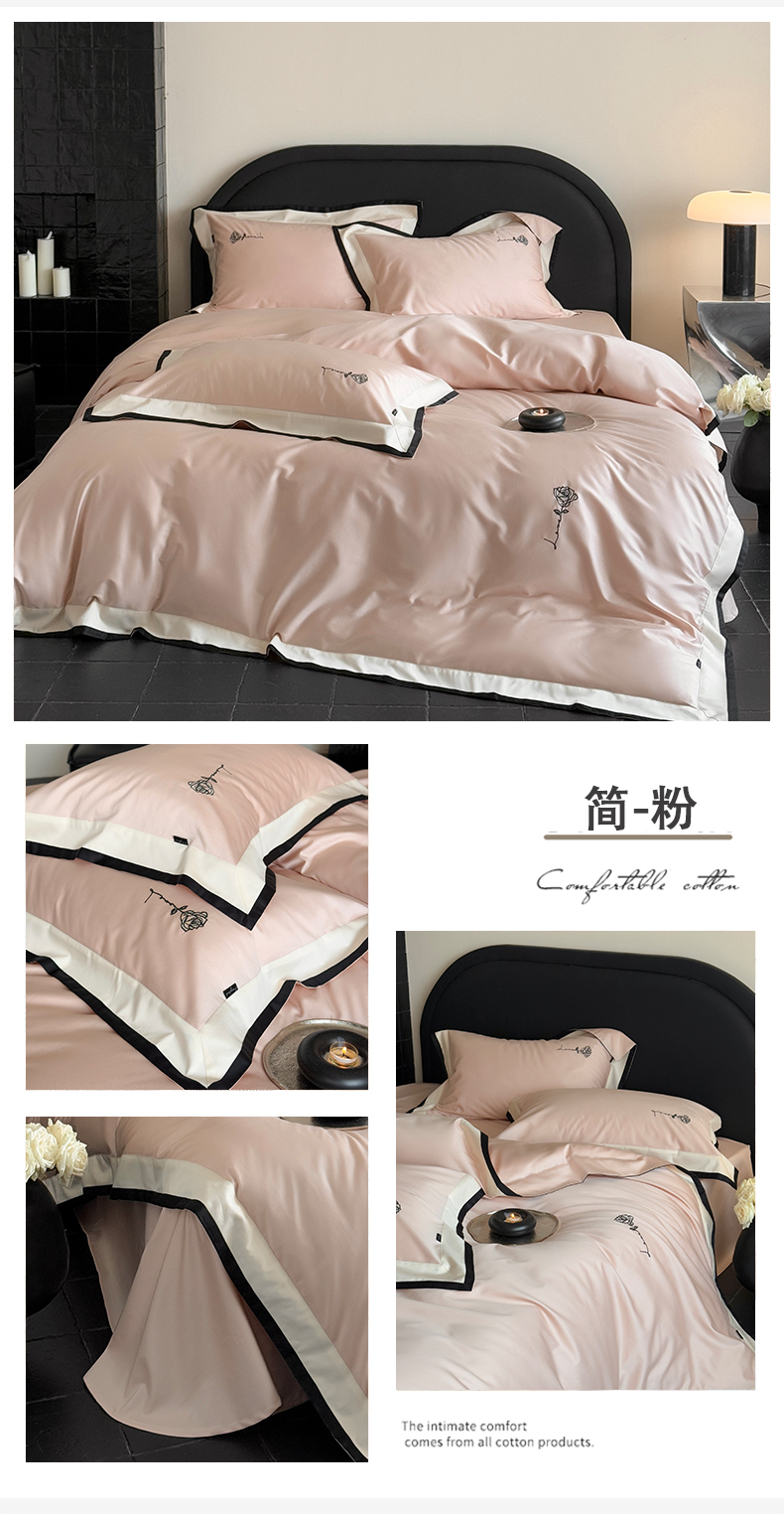 佳汐蓝家纺 2025新款100支澳棉刺绣拼接四件套-简 简-粉色