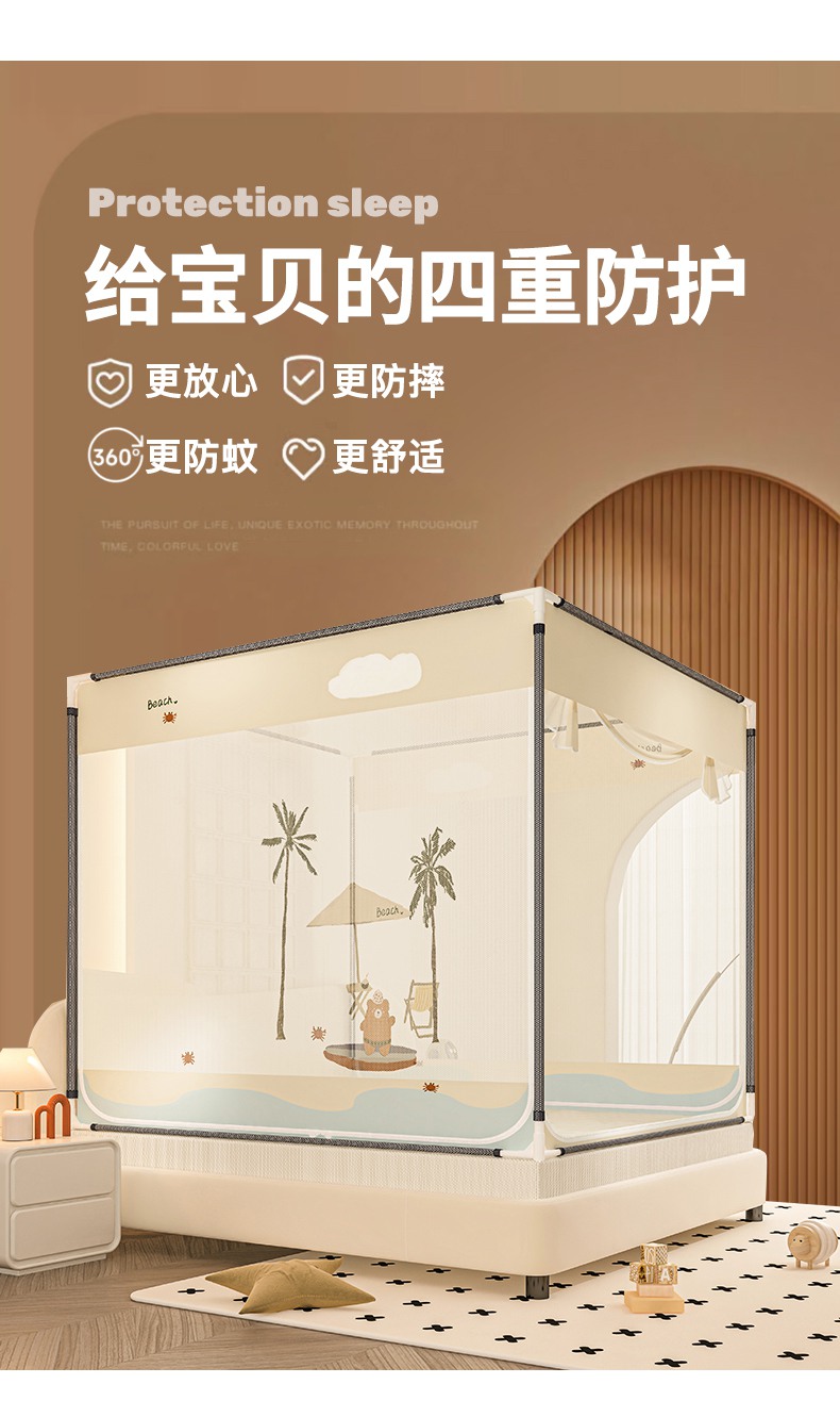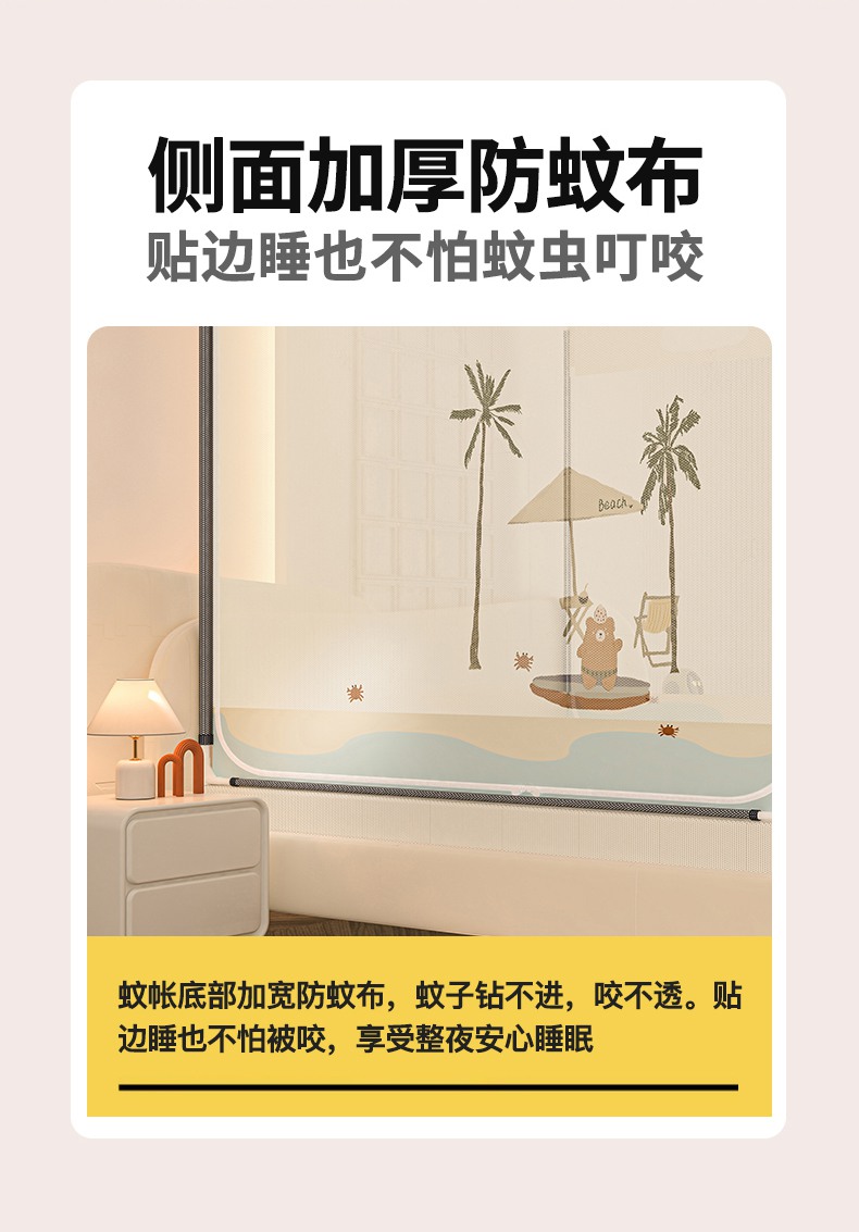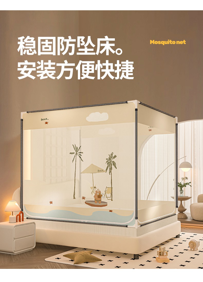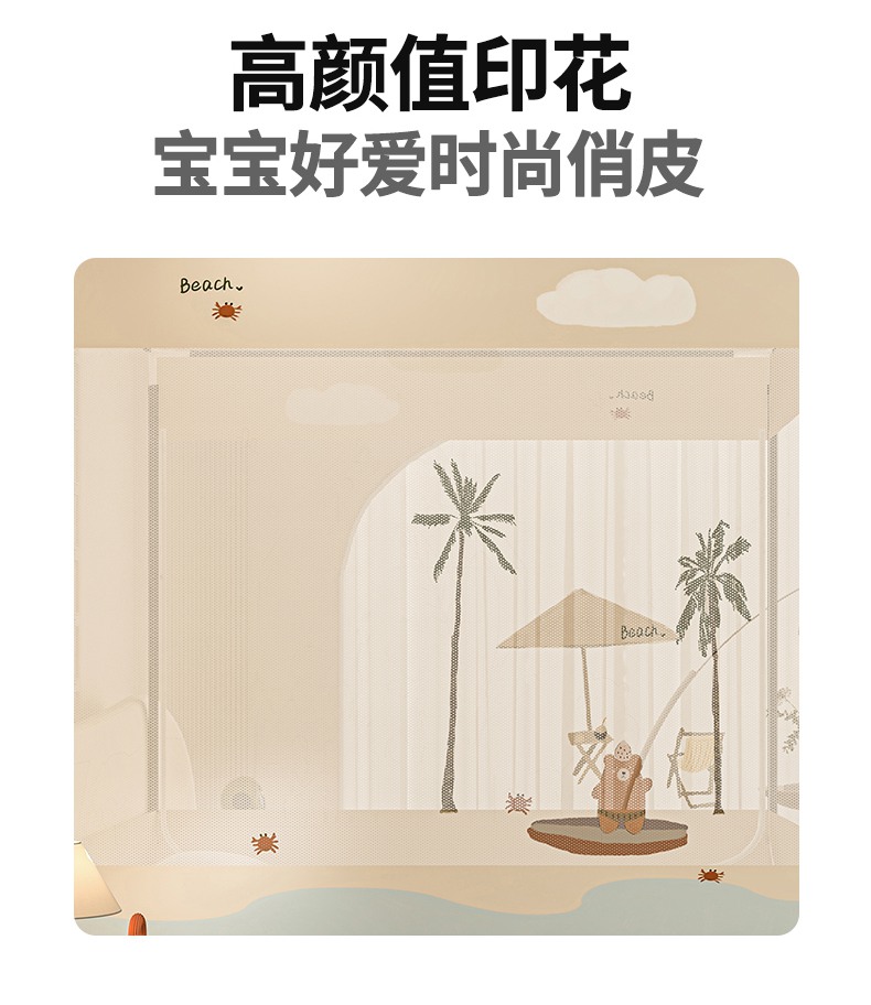 当前位置: 91家纺网 > 商品网购 > 床上用品 > 蚊帐 > 坐床式蚊帐 > 青竹苑 2025新款帐纱印花外穿坐床防摔蚊帐 沙滩熊熊