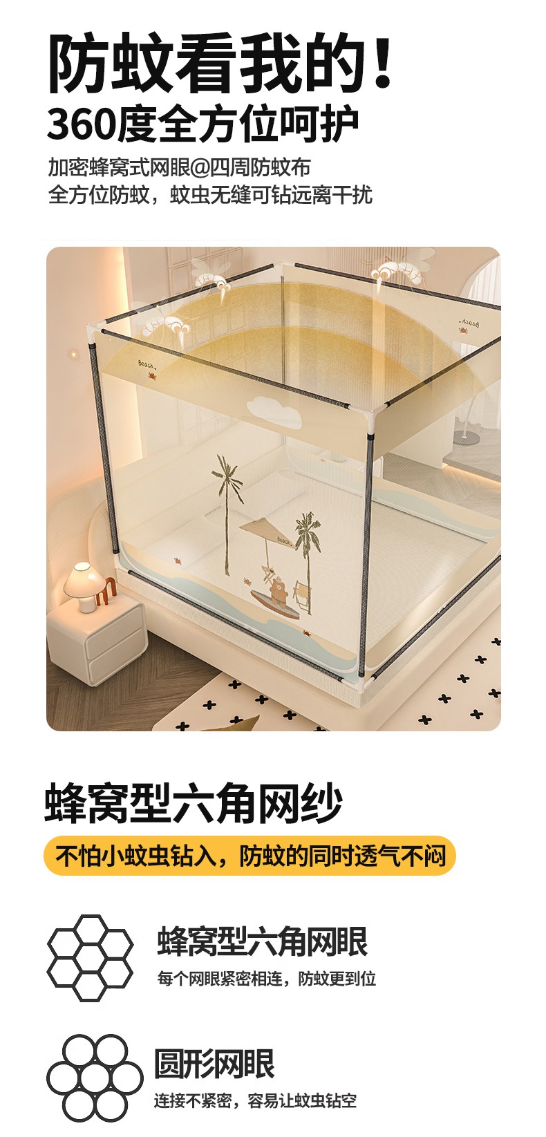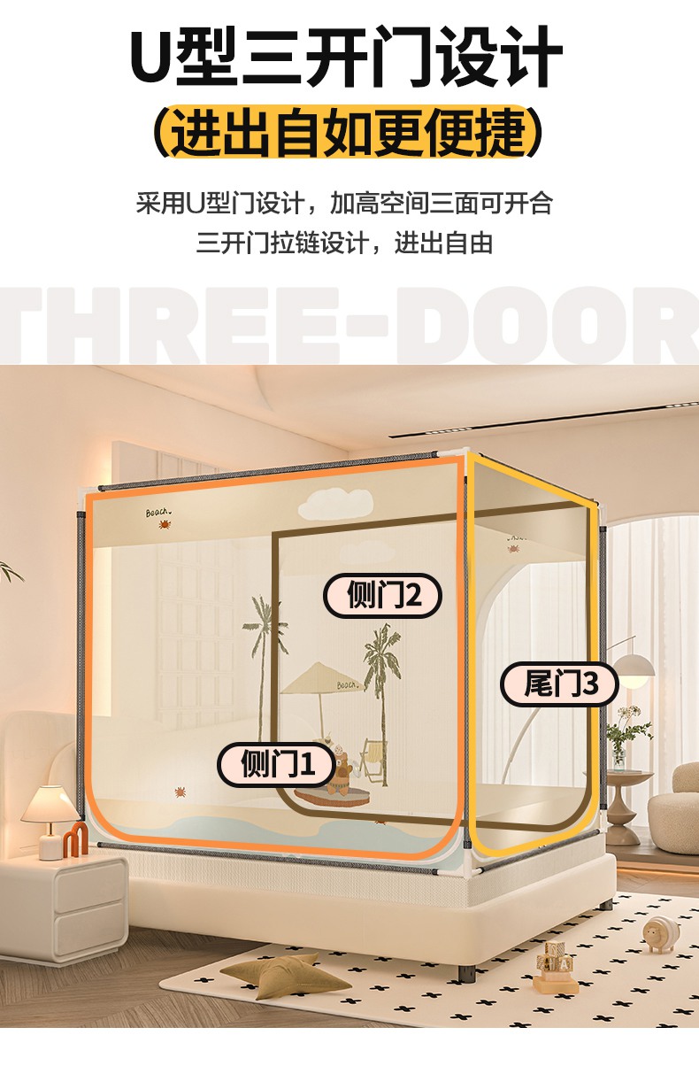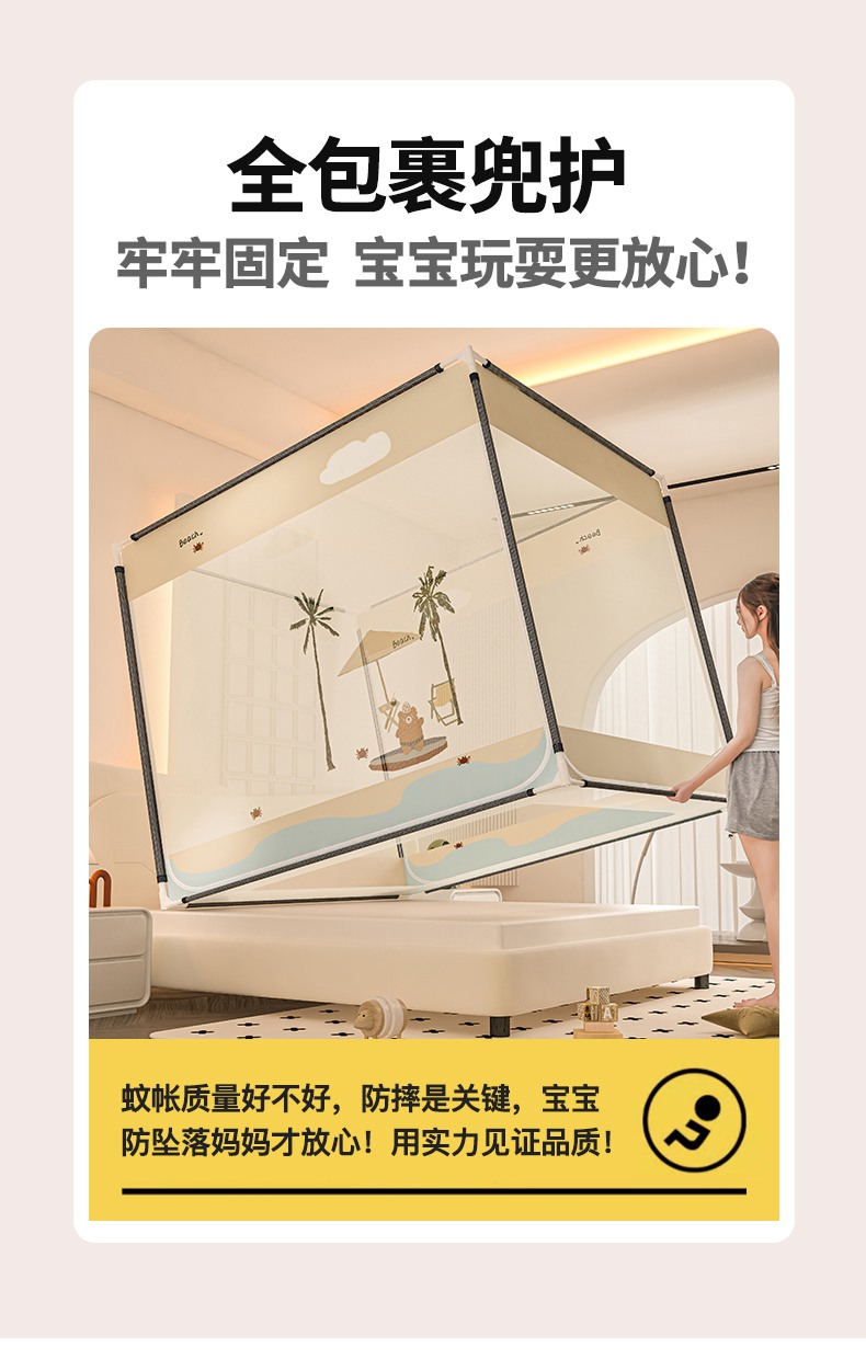 当前位置: 91家纺网 > 商品网购 > 床上用品 > 蚊帐 > 坐床式蚊帐 > 青竹苑 2025新款帐纱印花外穿坐床防摔蚊帐 沙滩熊熊