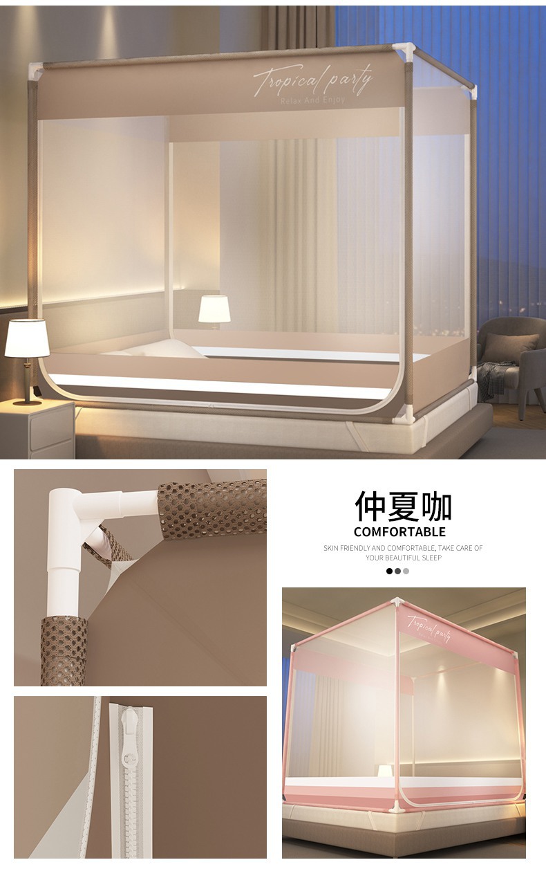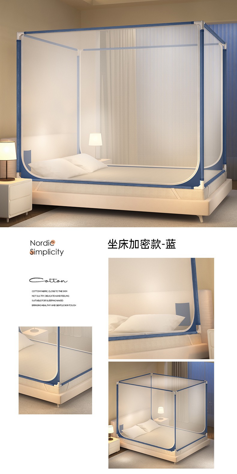 商品名称:青竹苑 2025新款双门全底外穿坐床式蚊帐儿童防摔防蚊拉链方帐 卡通-三只熊