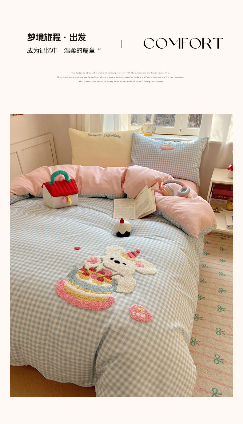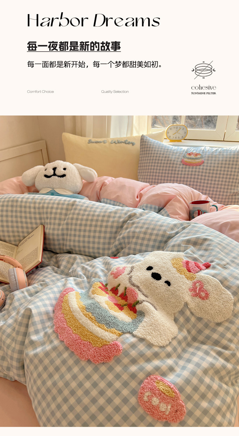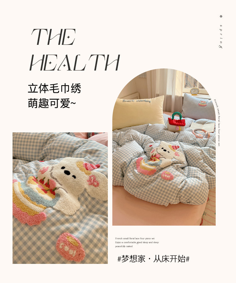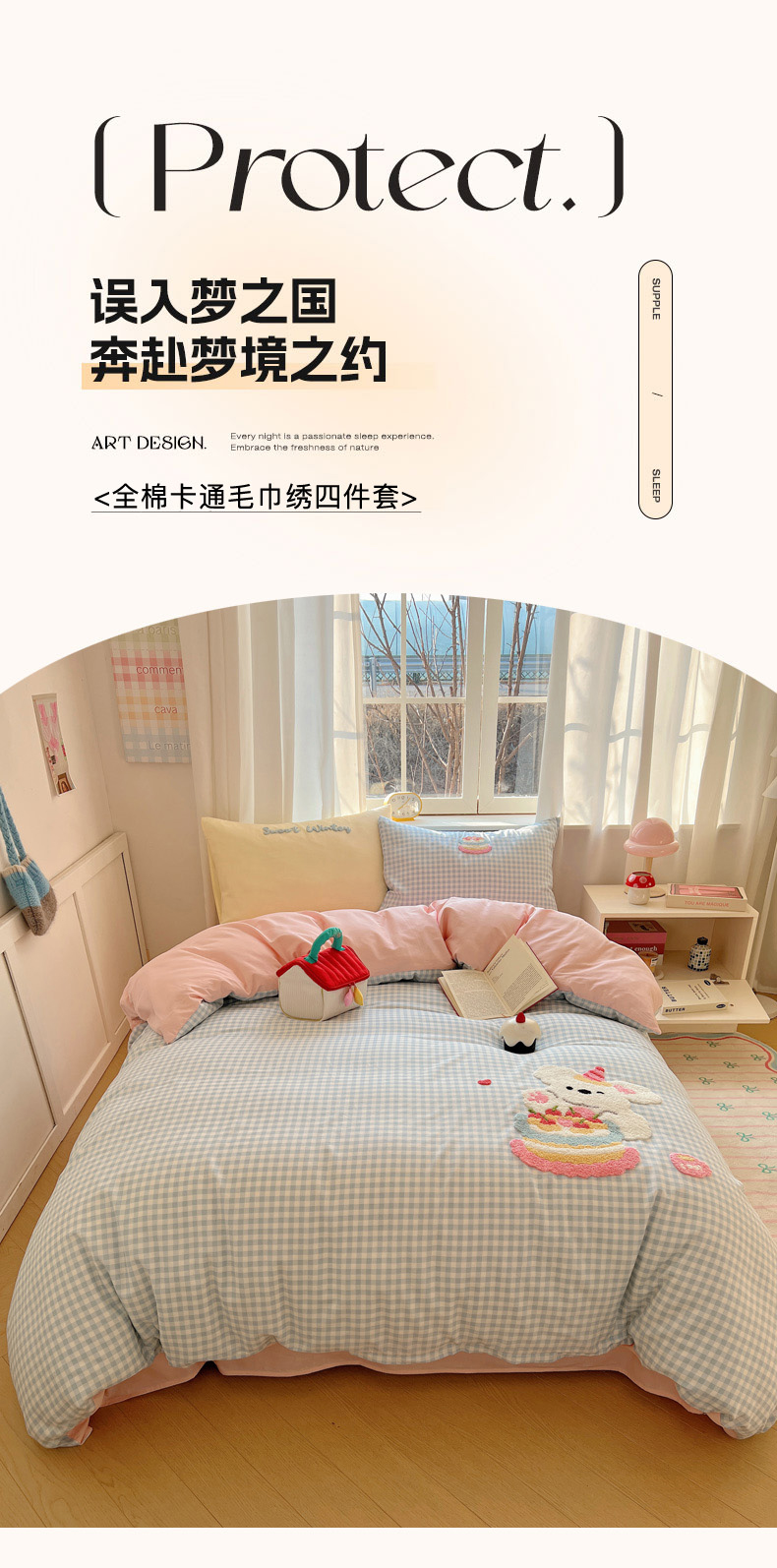 丽涵家纺 2025新款全棉印花毛巾绣卡通四件套 小狗蛋糕