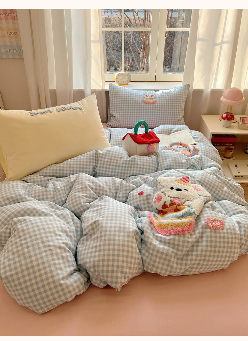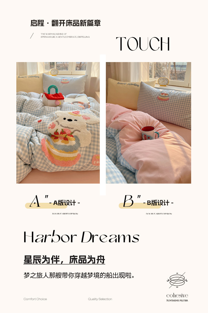 (总)丽涵家纺 2025秋冬新品韩系牛奶绒波点小格子全棉花边四件套三件套,奶油波点-粉蓝,奶油波点-蓝黄,奶油波点-香芋紫,奶油波点-天蓝,奶油波点-蜜粉,奶油波点-嫩粉