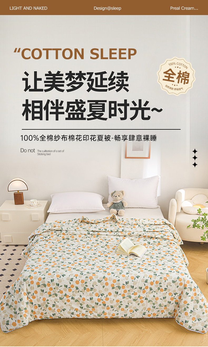 商品名称:棉乐町 2025新款全棉棉花夏凉被纯棉夏被空调被子 心想事橙