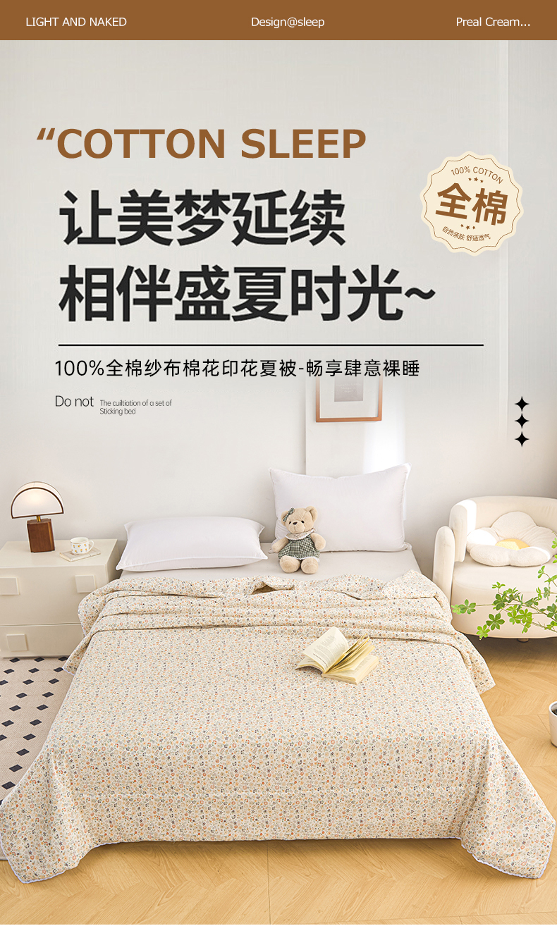商品名称:金泰莱 2025新款里外全棉夏被纱布夏被棉花被子夏凉被纯棉夏被空调被 芒种