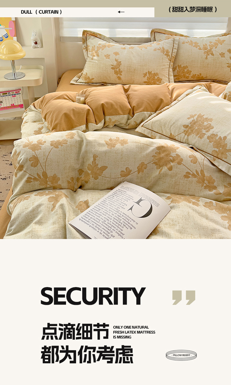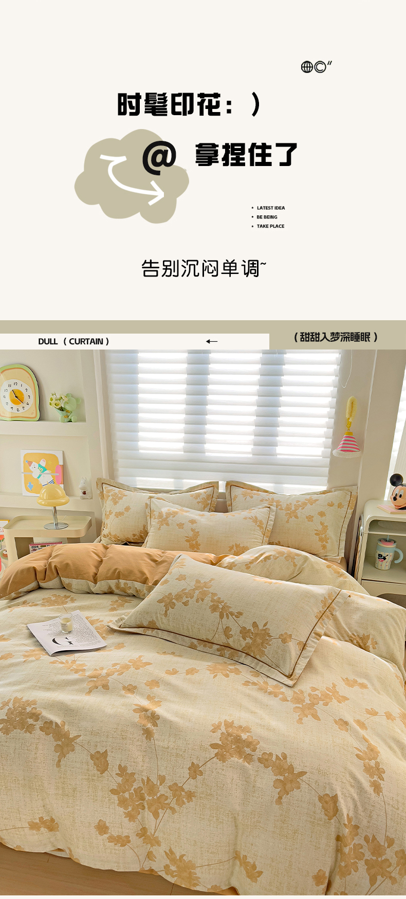暖芯优选 2025新款小清新印花全棉磨毛四件套 浅花悠悠