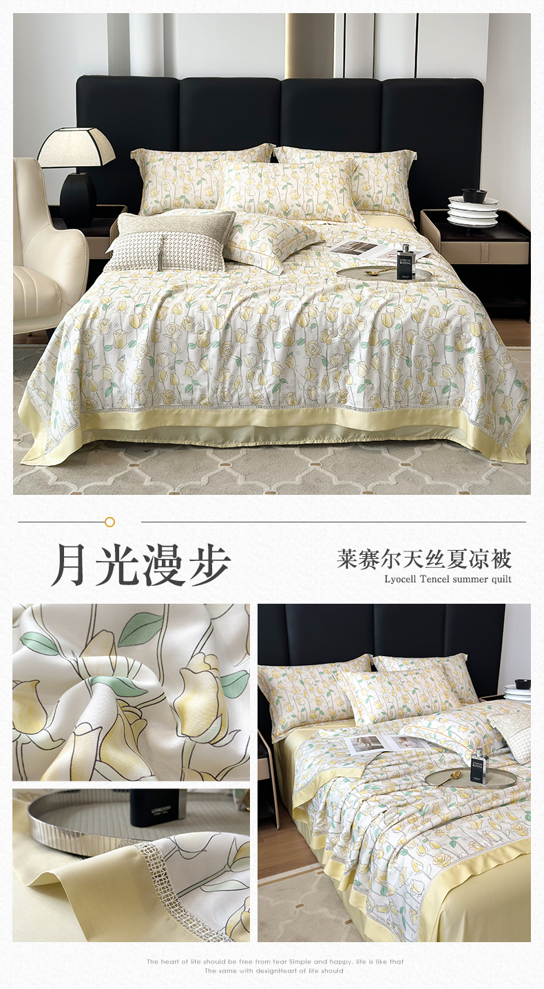 娇逸家居 2025新款50支印花莱赛尔天丝夏被镂空款花边夏凉被 月光漫步