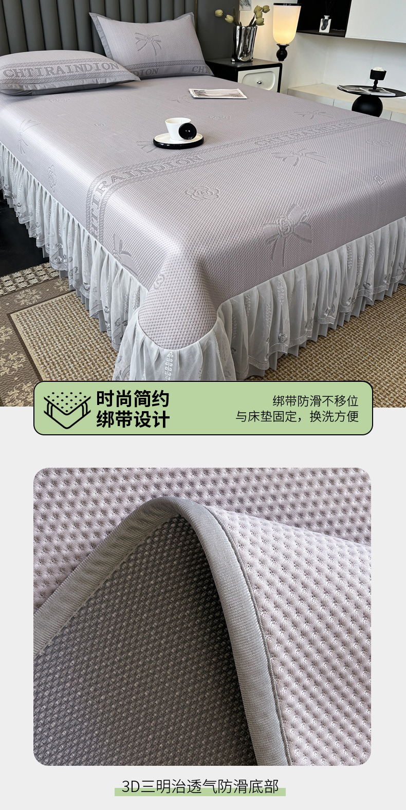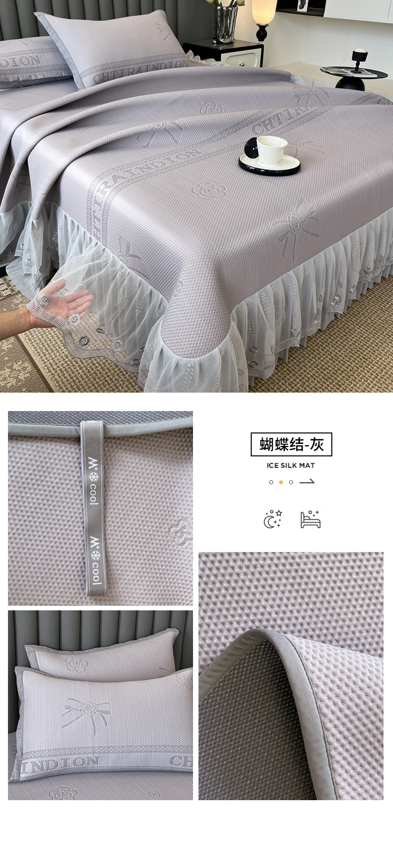 商品名称:阿牛席业 2025新款凉感床盖系列 h-蝴蝶结-灰(床盖)