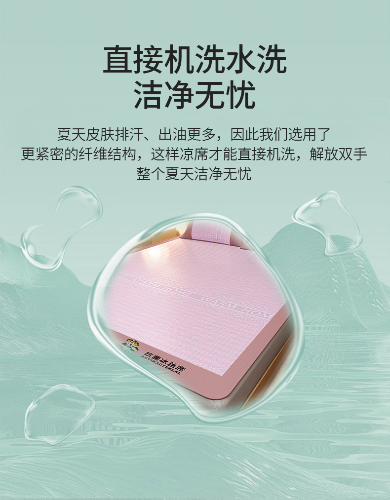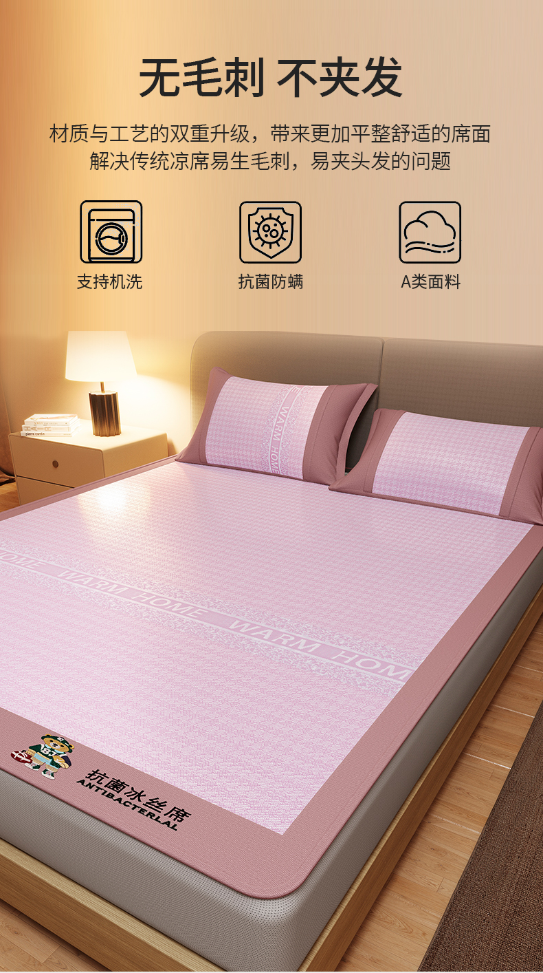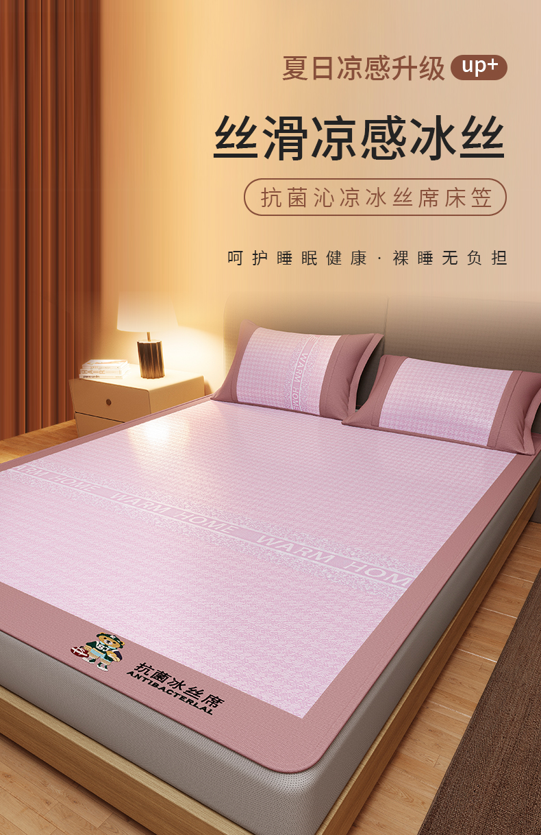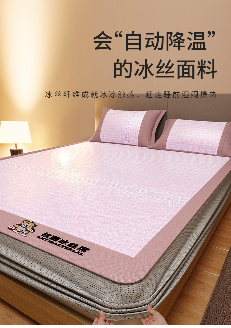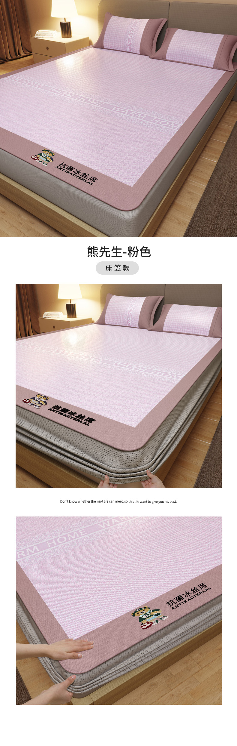 商品名称:阿牛席业 2025新款熊先生凉感冰丝系列凉席 熊先生-粉床笠款