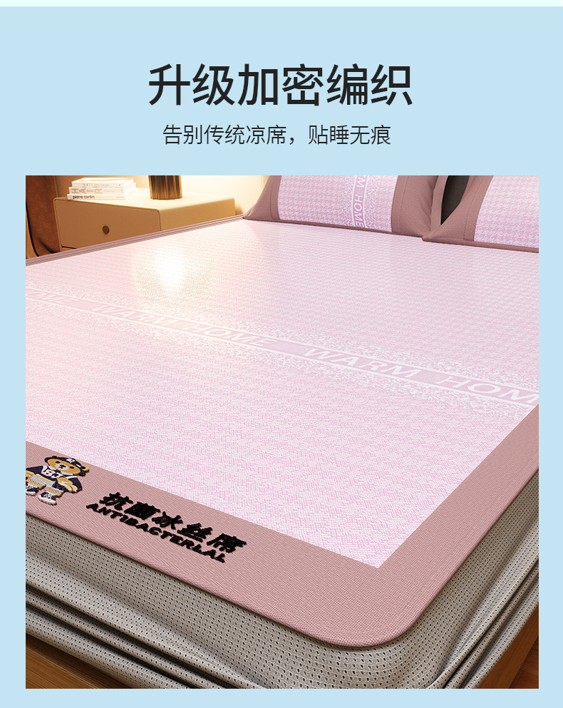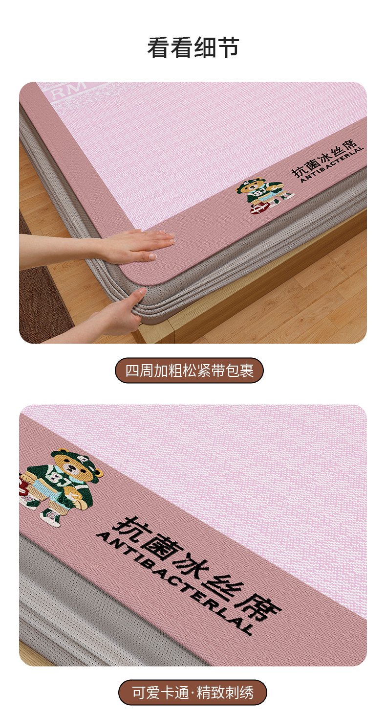 阿牛席业 2025新款熊先生凉感冰丝系列凉席 熊先生-粉床笠款
