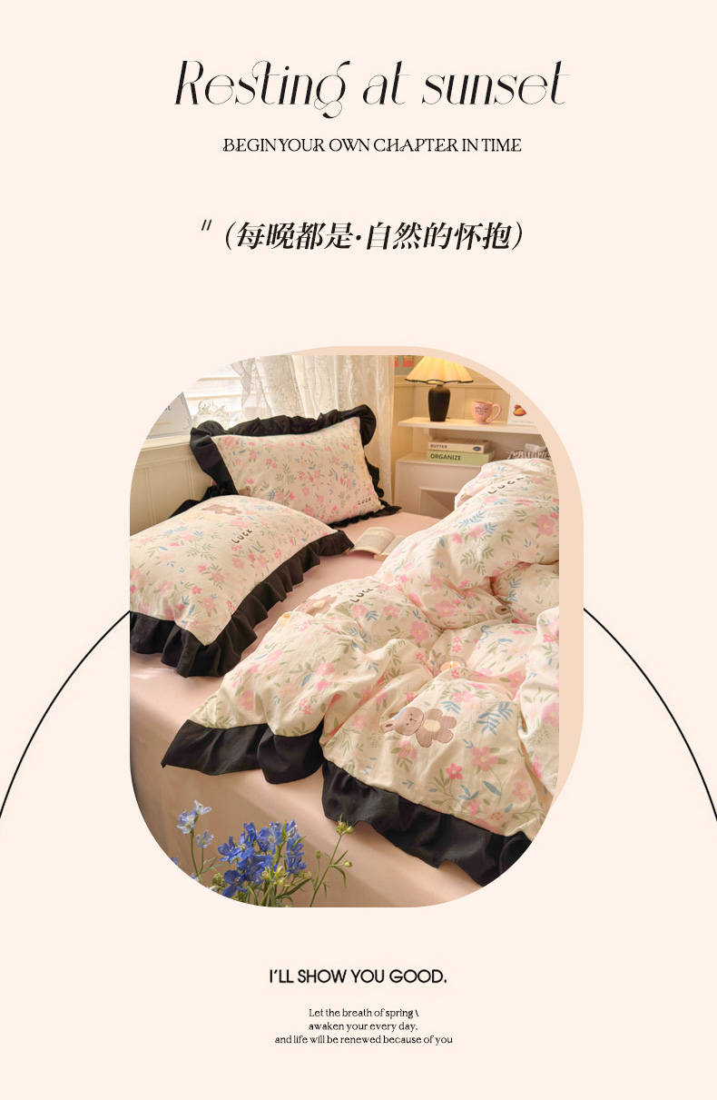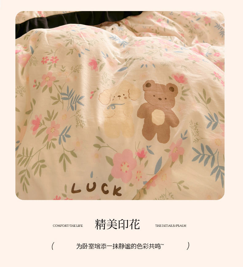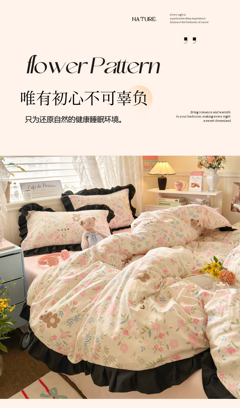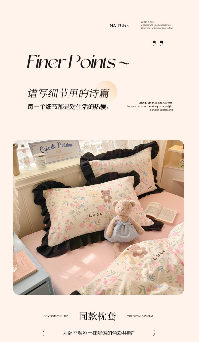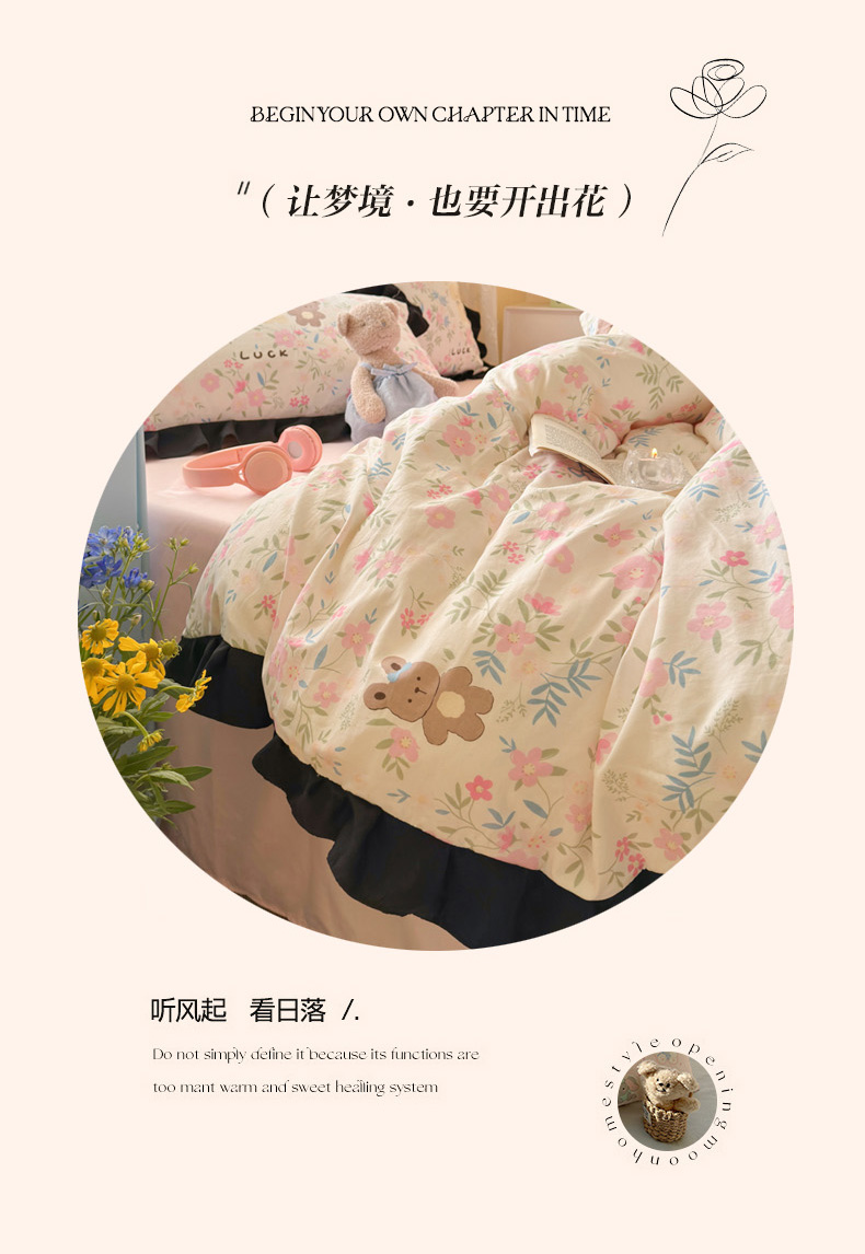 当前位置: 91家纺网 > 商品网购 > 床品套件 > 四件套 > 水洗棉四件套 > 慕澄家纺 2025新款法式浪漫风花边款水洗棉四件套 花边款-花园宝贝