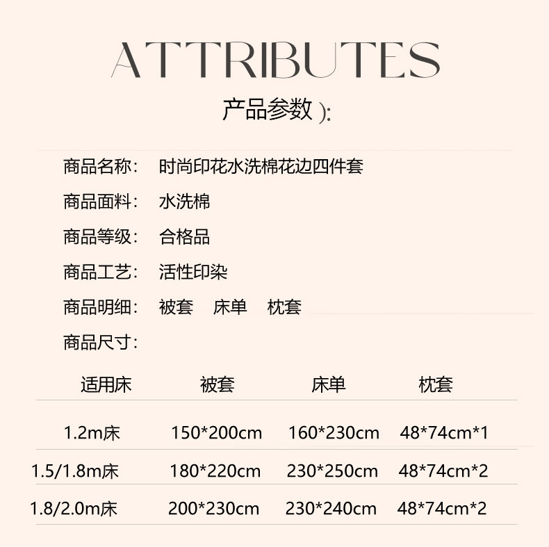 1.8m床单款四件套(被套180*220cm) | ¥60.00 |