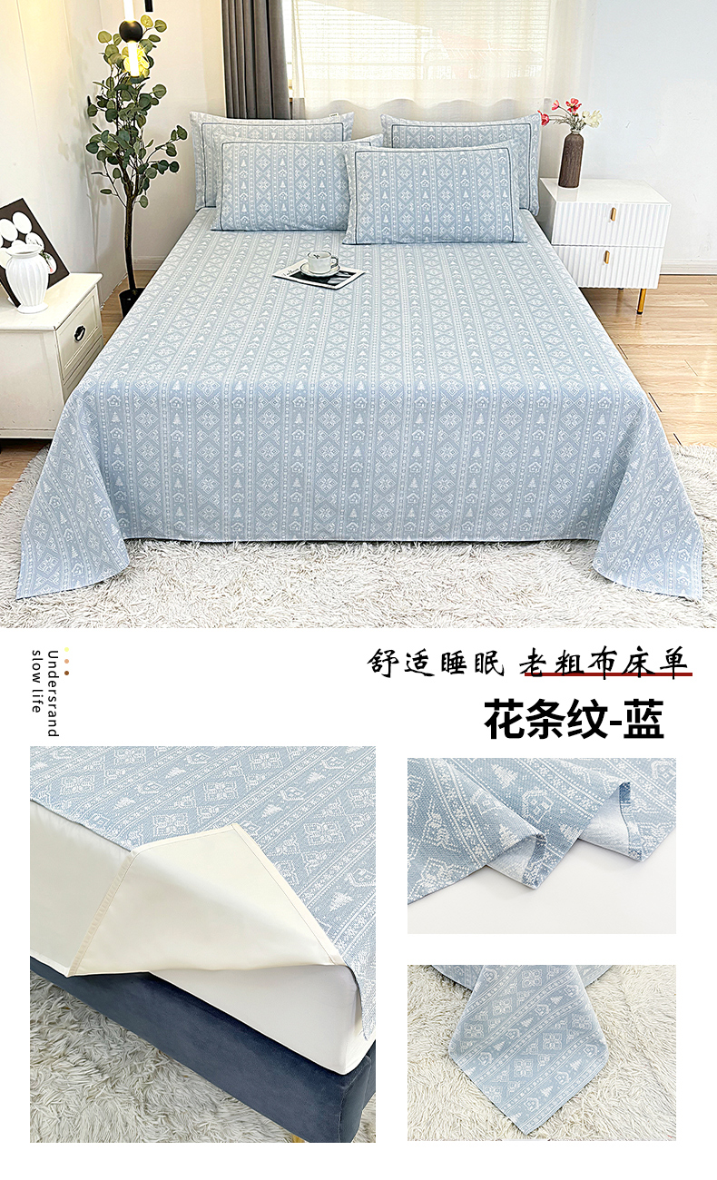 • 91家纺网 家纺一手货源 找家纺 伊而梦蚊帐 2025新款A类老粗布抗菌床单 花条纹-蓝