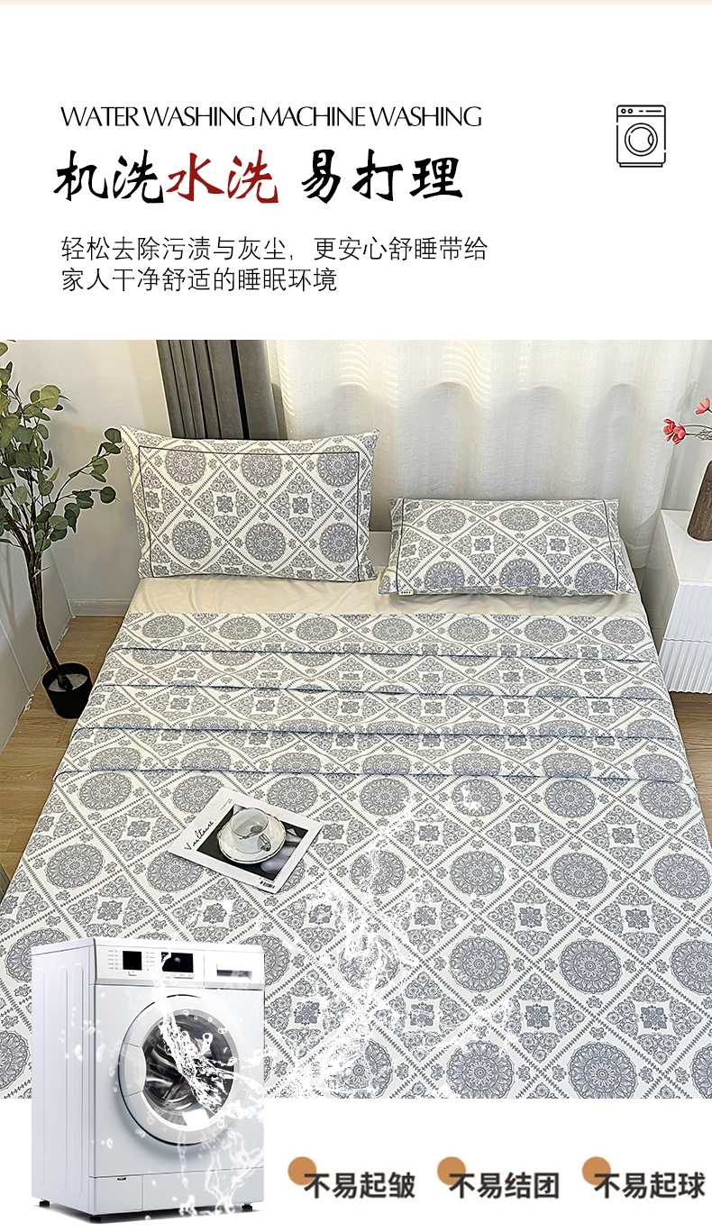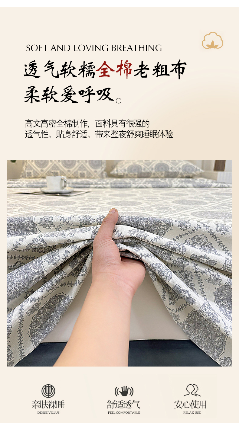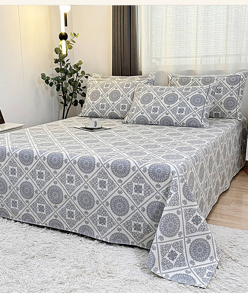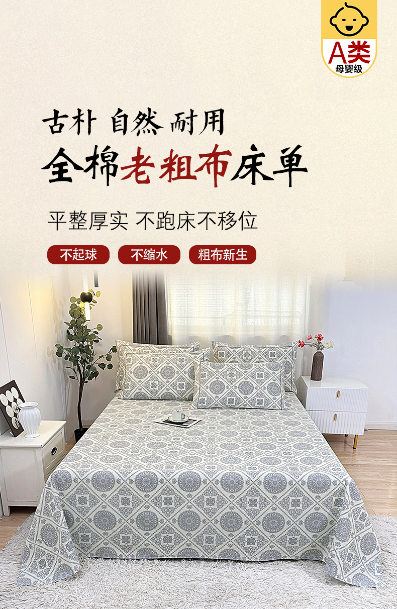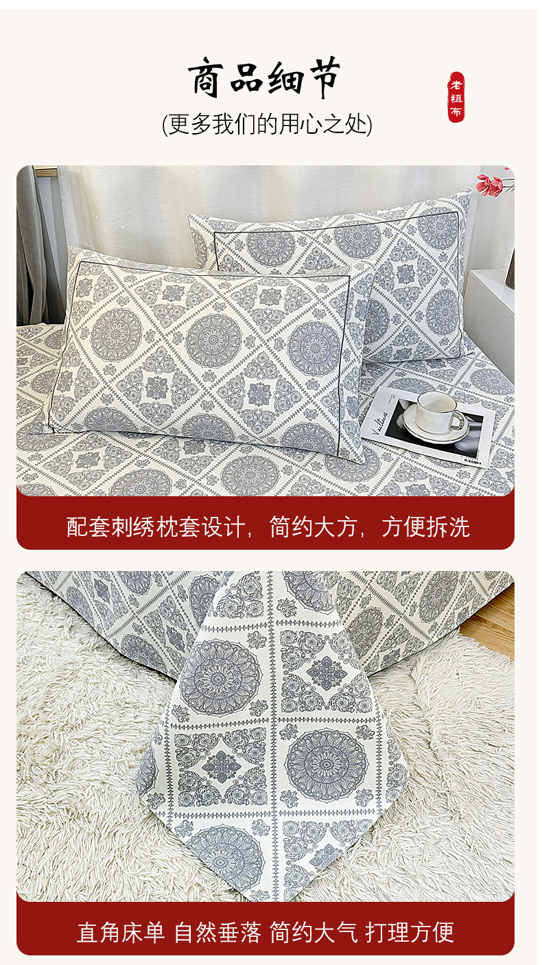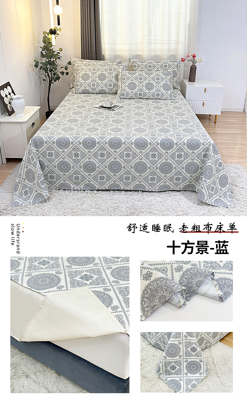 • 91家纺网 家纺一手货源 找家纺 伊而梦蚊帐 2025新款A类老粗布抗菌床单 十方景-蓝