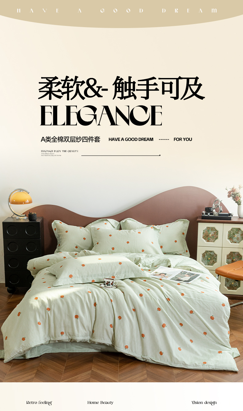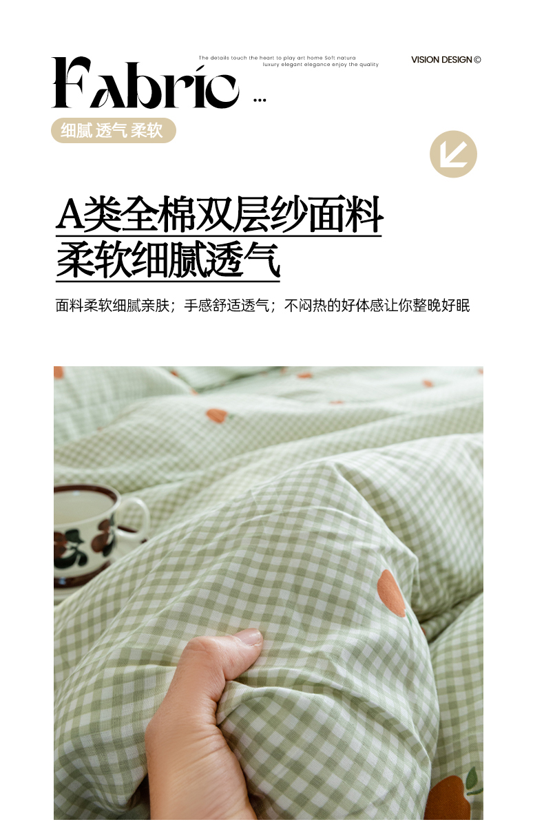 当前位置: 91家纺网 > 商品网购 > 床品套件 > 四件套 > 全棉普通四件套 > 锦罗绣2025新款A类母婴全棉有氧印花双层纱四件套可定制任意尺寸 甜桔