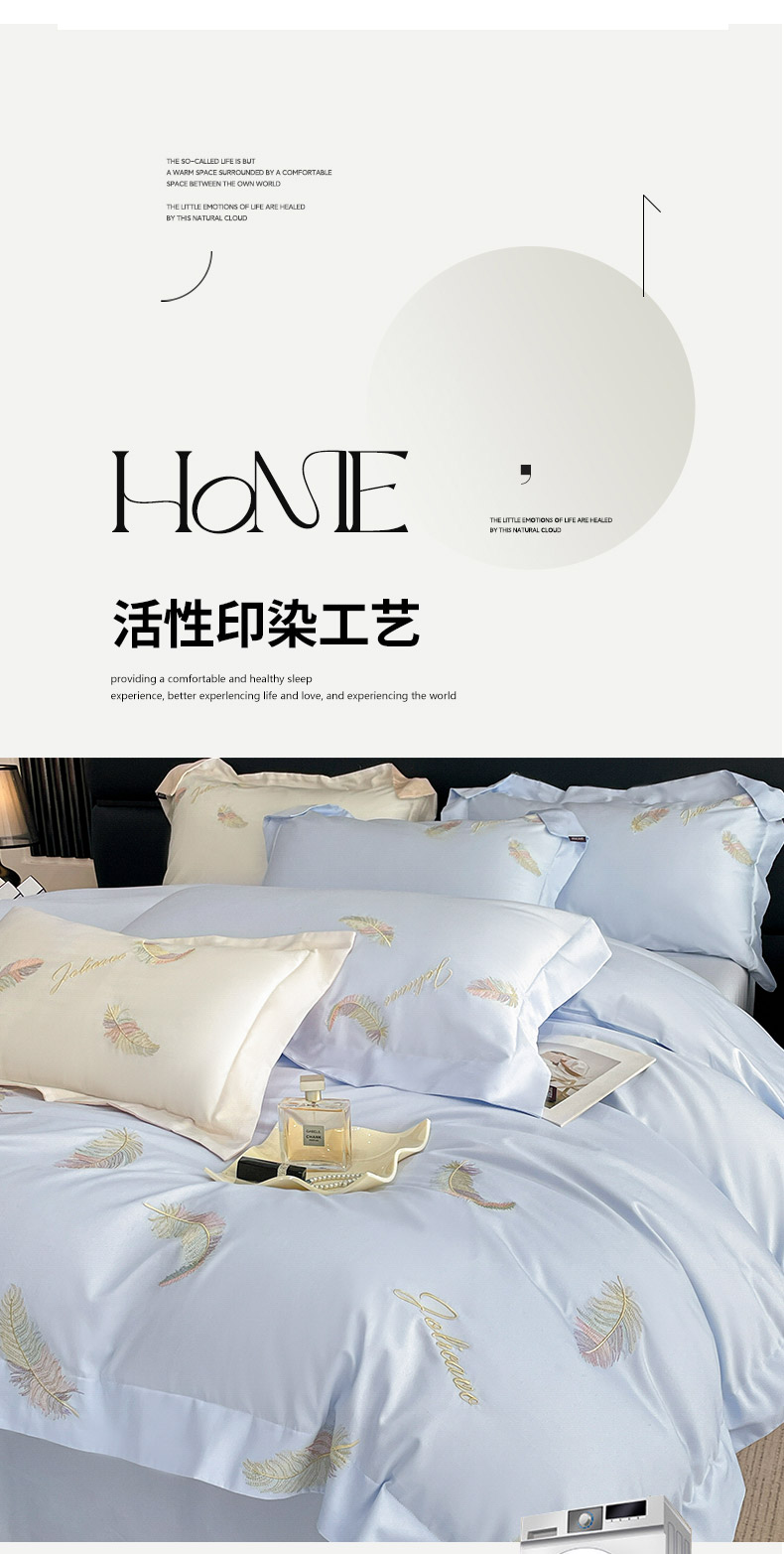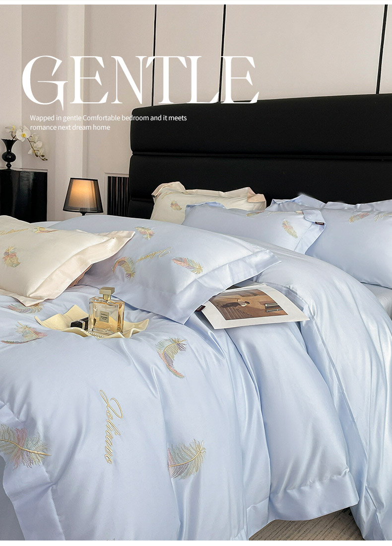 轻奢风新品贡缎长绒棉四件套纯棉全棉重工刺绣床单被套高端床上用品 芊羽梦-慕蓝